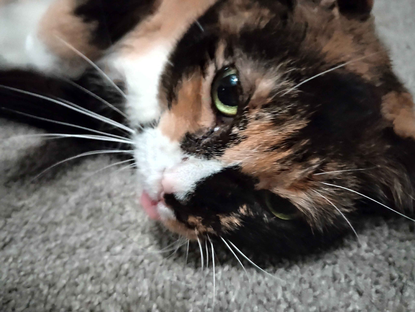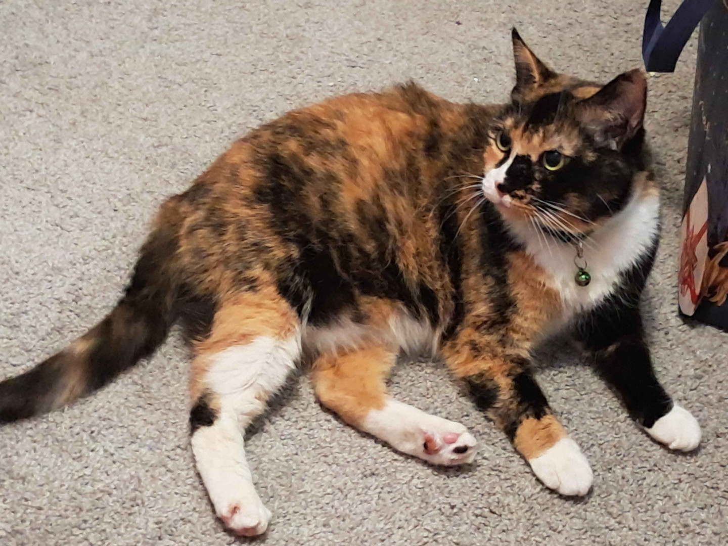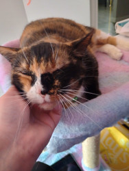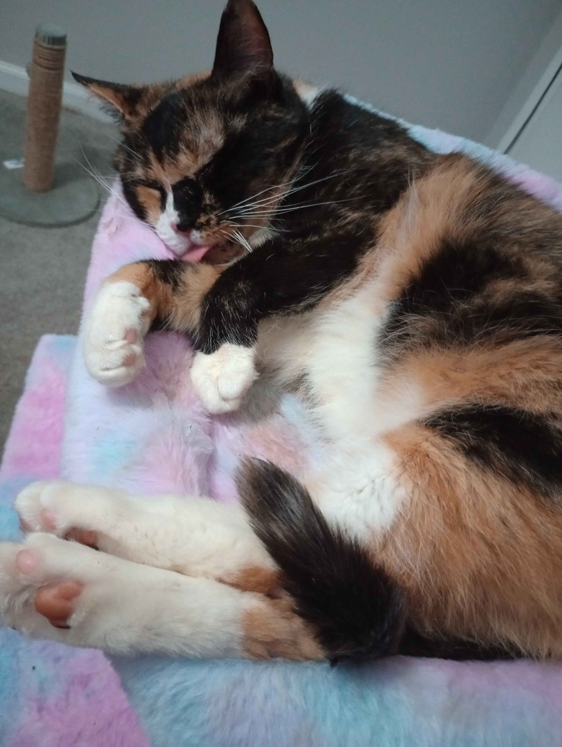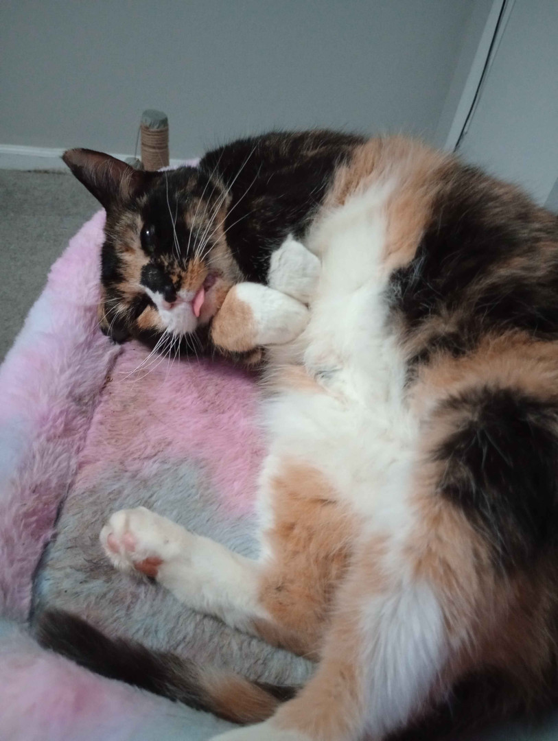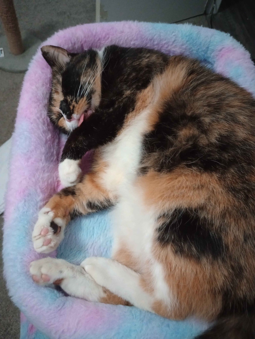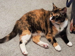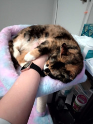 She's just the sweetest tortie-calico! She was the best discount ever! Nobody wanted her, but we met and we clicked immediately, never seen someone so shocked when Grammy, now Mia; who was malnourished and hated everyone; just curled up in my lap and I wasn't planning on purchasing a cat that day, and I had to beg my dad for an hour. She was the best 40 bucks ever! I want to spoil her for being the absolute sweetest kitty ever!
