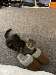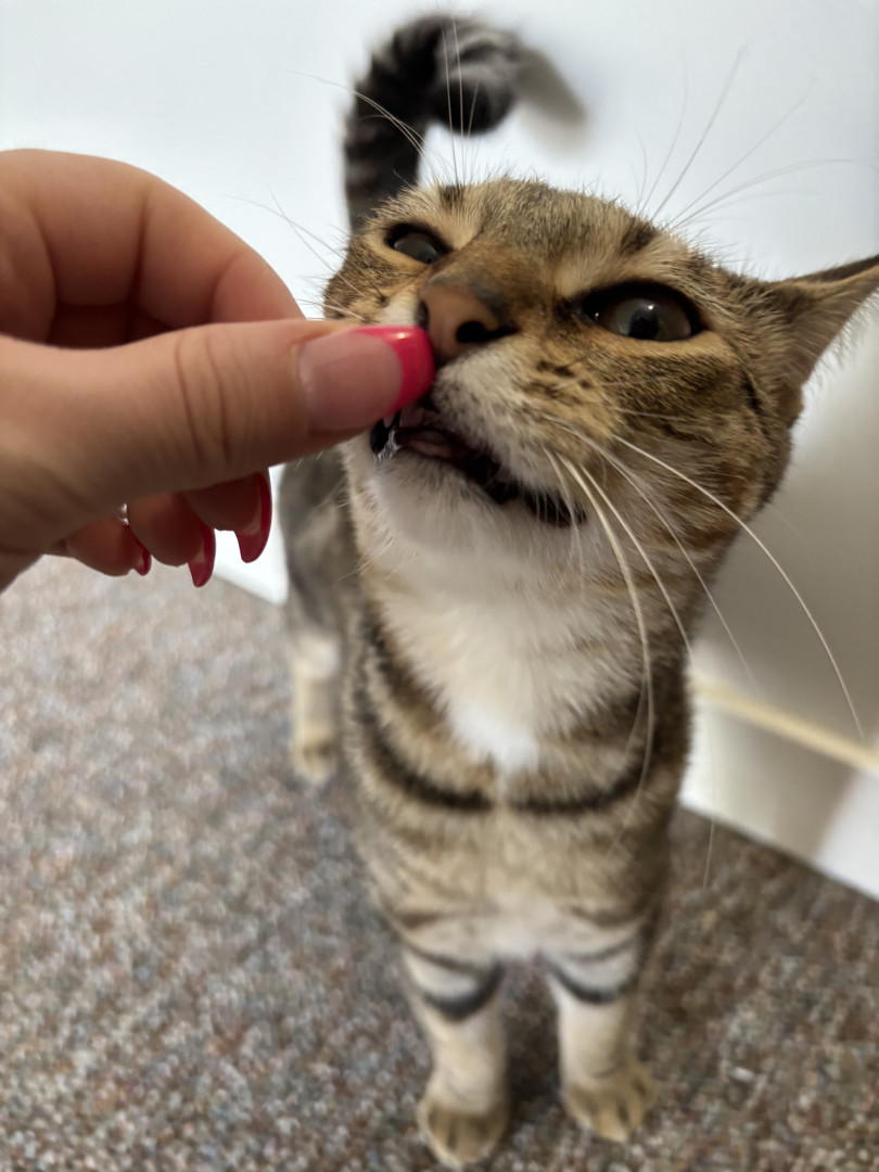 A curious, sweet, loving girl who enjoys making biscuits, getting pets, and cleaning her brother.