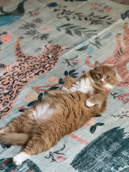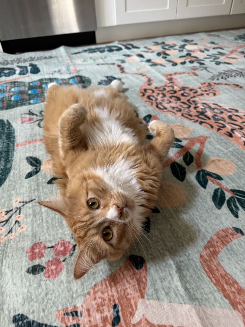 Michael is a big vibrating cuddle fluff who loves to talk back, eat, play dead, and is always in the wrong place at the right time.