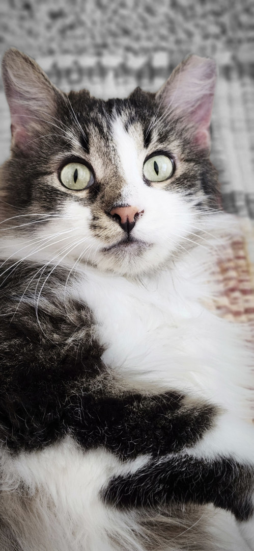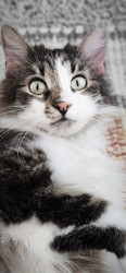 Shes Main coon she has the lion neck ..hair between toes...5 toes on the front and four on the back..