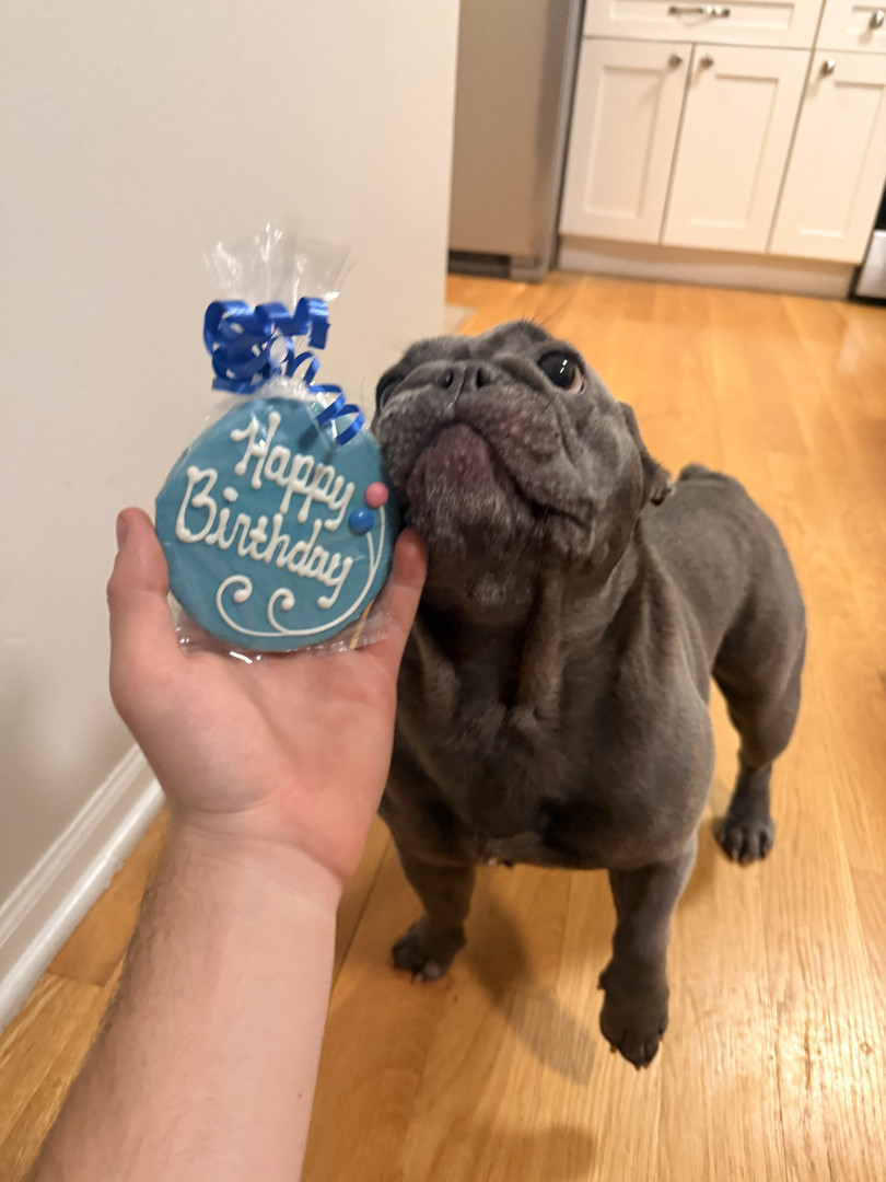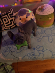 Receive Text UpdatesMidas absolutely loves his pink squeaky bone! He does not stop when it comes to that toy. Midas will nudge your hand with the bone until you throw it for the 1000th time!