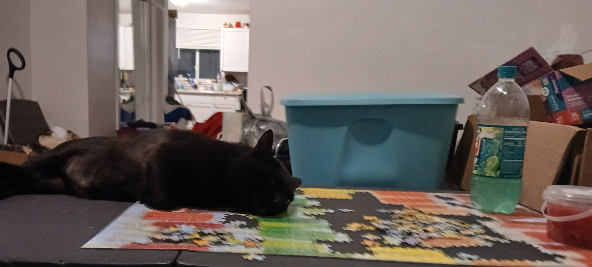 He loves my dog, and i try to do a puzzle he always lays on top of it so I can not finish it.
