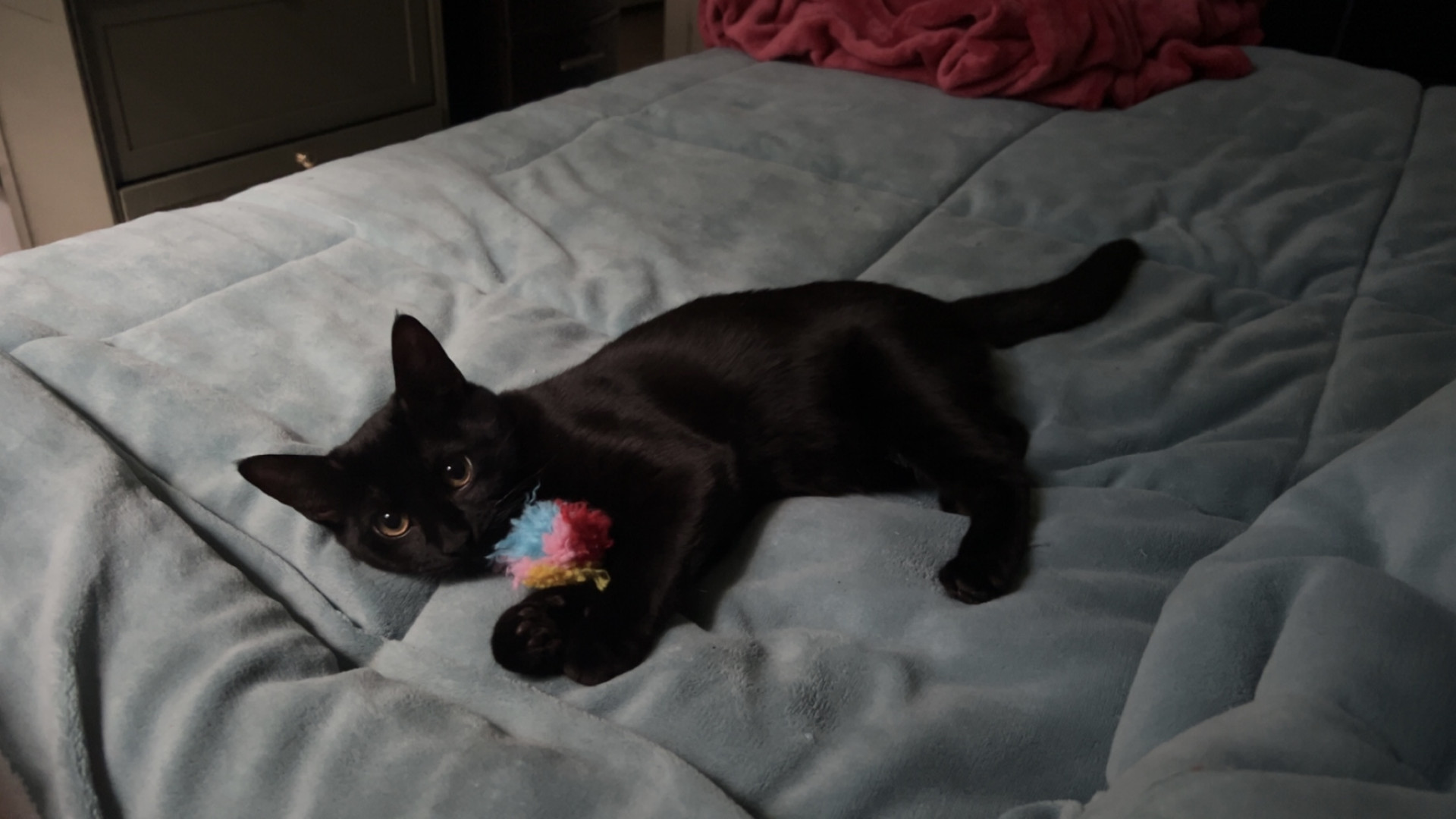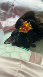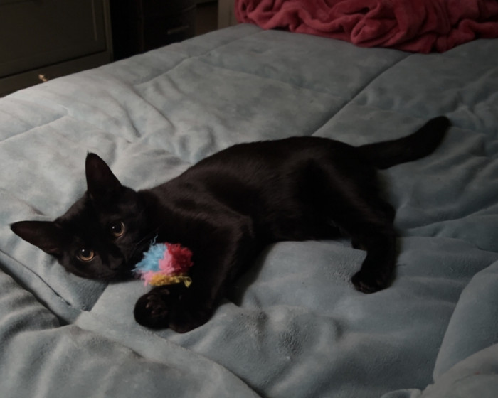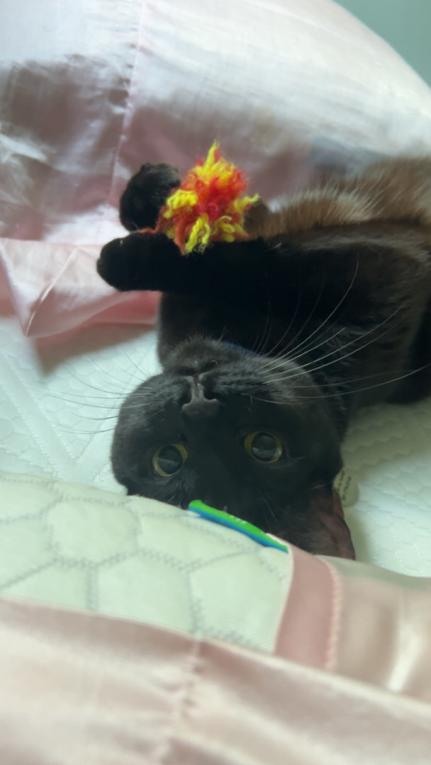 Midnight is loving girl that shows her intelligence in different ways. For example, she taught herself how to play fetch with her fuzzy ball