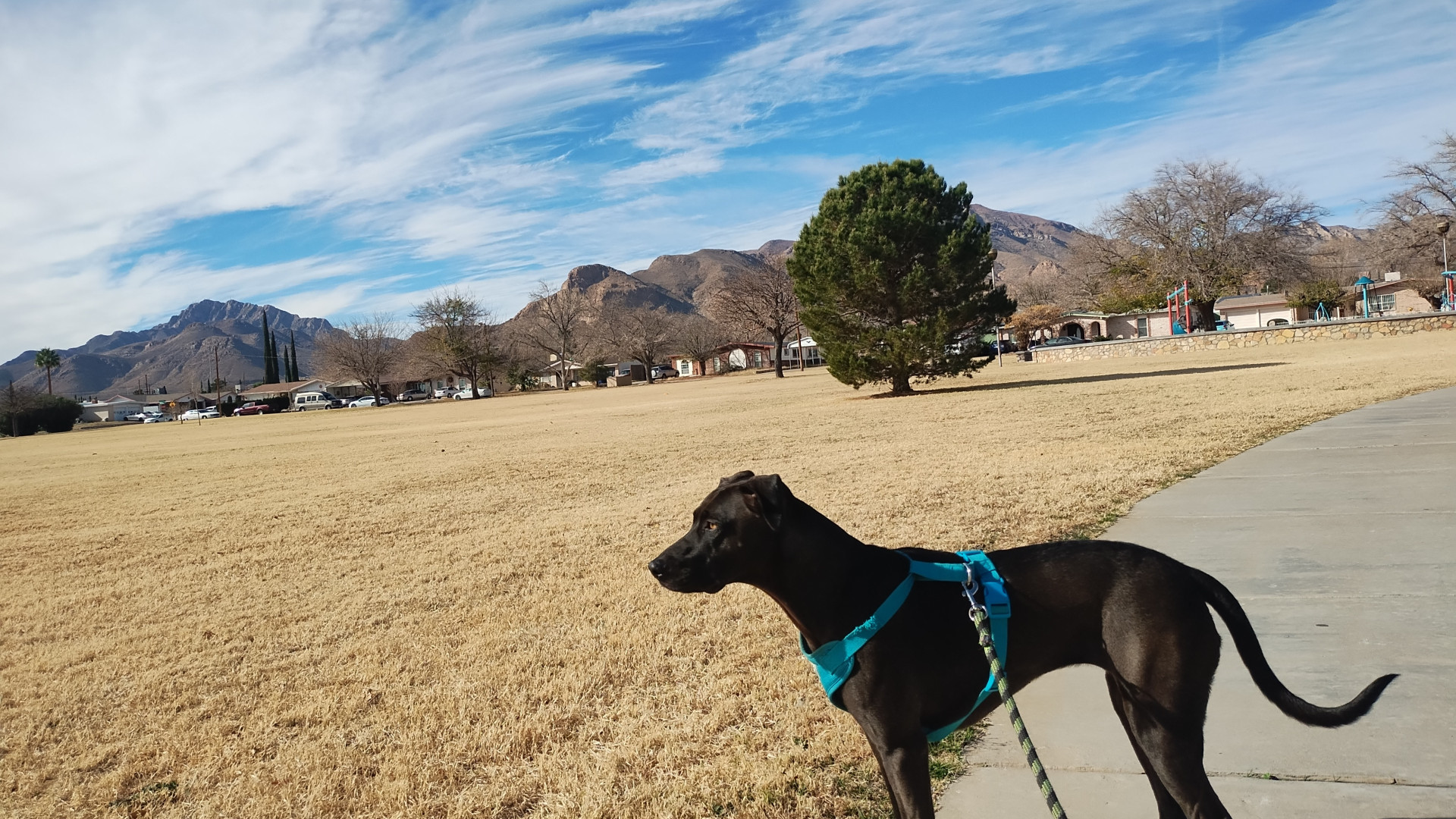 She's a friendly, loving dog who everyone loves when they meet her. She just loves the belly rubs and pets and loves the exercise and walks. Midnight was rescued from a crate thrown in the front yard of my mom's neighbor at 2 months. We took her in, did it for my college age son to have a friend. She's changed the family.