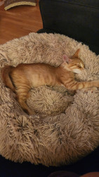 Mikey is the sweetest kitty who just loves life. He spent the first 3-4 months of his life as an outdoor/garage kitty fighting to hold his own with several other cats and a handful of dogs. Despite the odds, he snuggled up on my lap at a family get together and I knew I couldn't possibly leave him. He came home with us that night and has been making us smile ever since. He snuggles at our feet all night, loves to play and tolerates all of our hugs and pets. Simply put, he's the sweetest kitty!