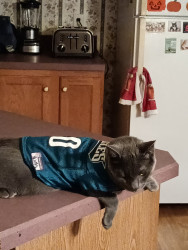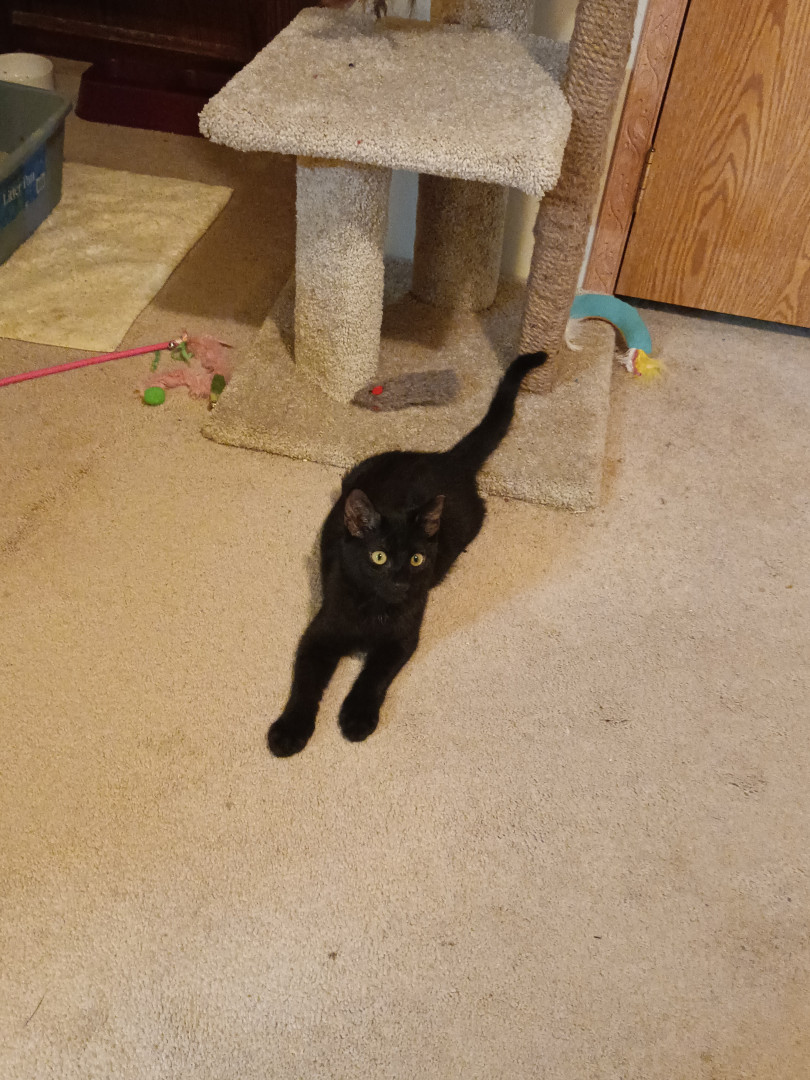 Mikey is at 5 month old ktten that we adopted from right outside of house. He has one of many cats that we participated in the TNR program.
