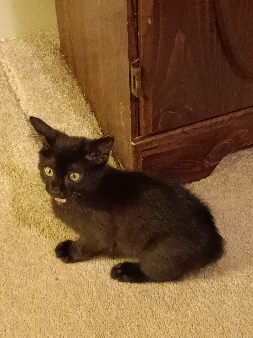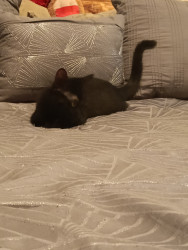 Mikey was born outside around our house we've been participating in the TNR program and when we brought him home we did not have the heart to put him back outside we were told he was only around 3 months old at the time and even though we already had three other cats that were also rescued we decided he wanted to see him is the baby in the family if an older cat brother and two older cat sisters they are also Young the girls are only three and a half and his brother is two Mikey and his brother