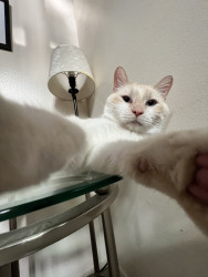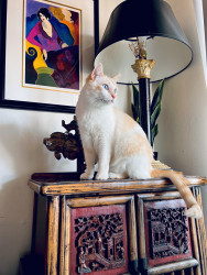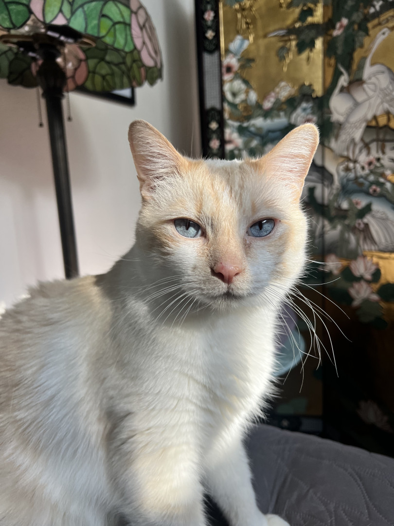 As if moonlight had touched the earth, Miklo- is a flamepoint Siamese. He speaks in poetry in all day, a feline Shakespeare. He loves, love.