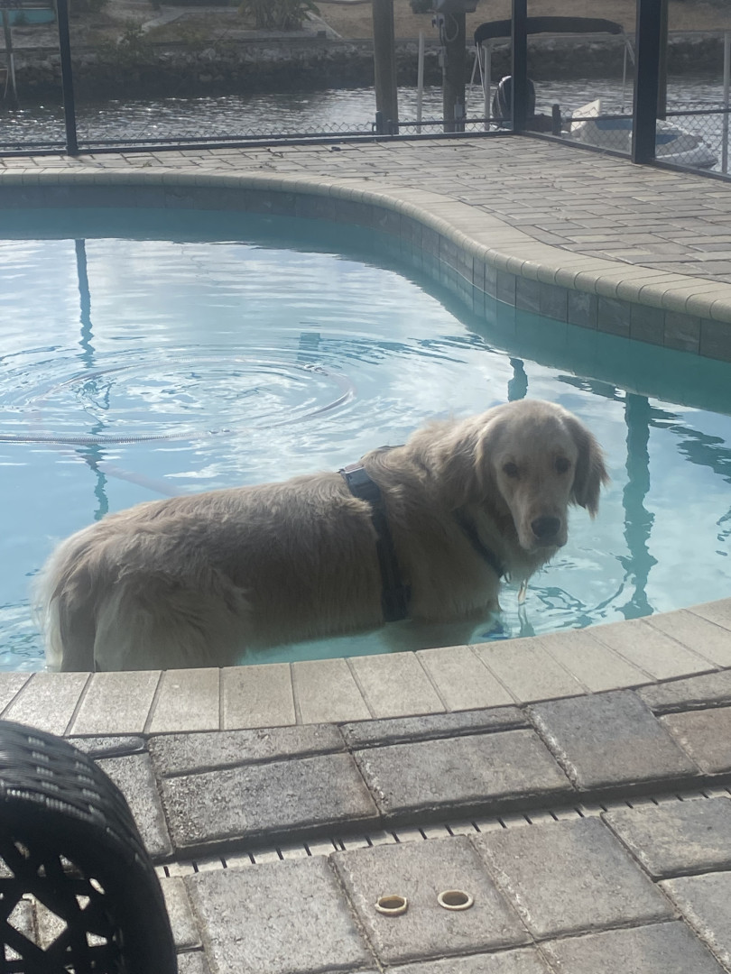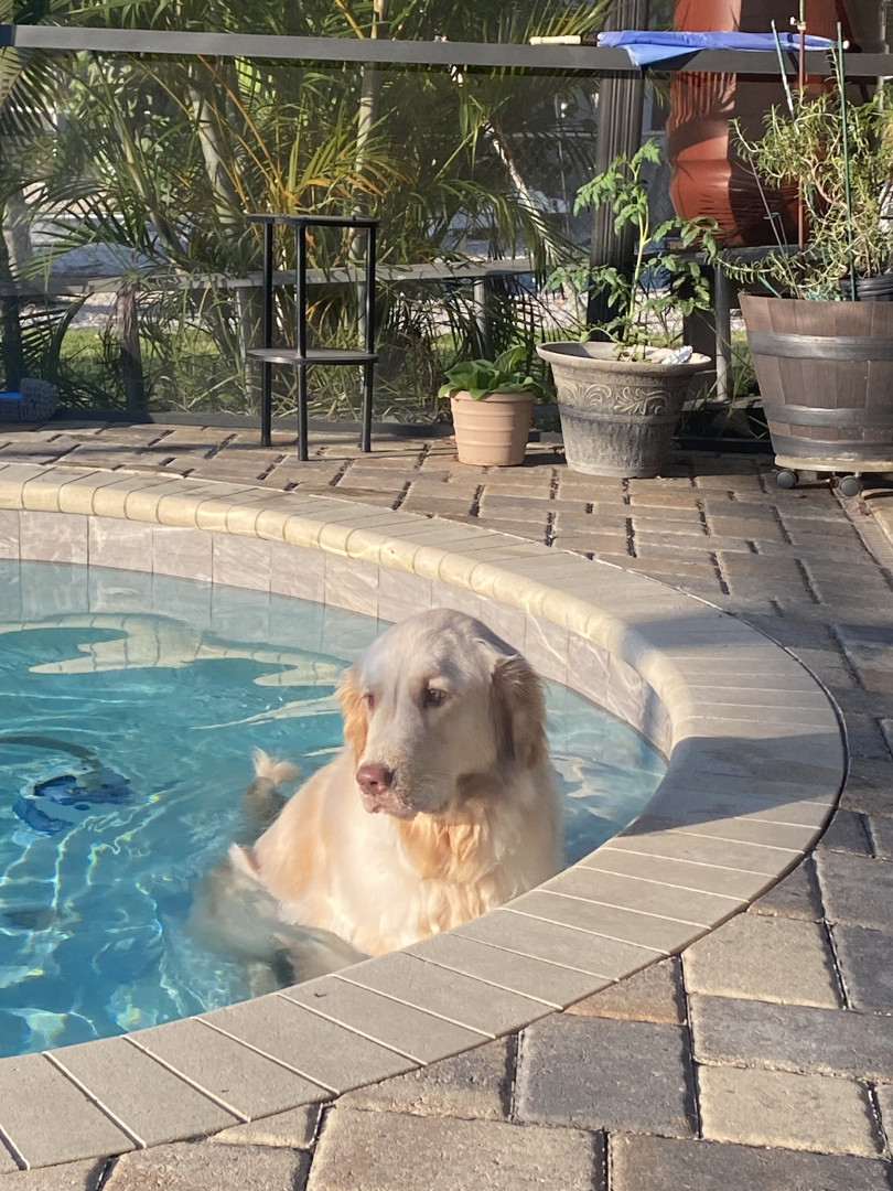Miller is an 85 lb 16 month old, wants to be in the pool everyday. He believes he is a lap dog at times. Wants to say hello to everyone