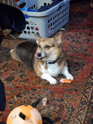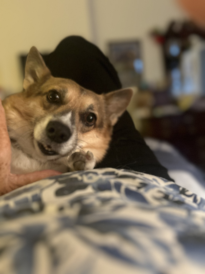 Millie is an adorable rescue dog, a beautiful corgi/beagle combination. She is so snuggly and loving. We are lucky to have her!