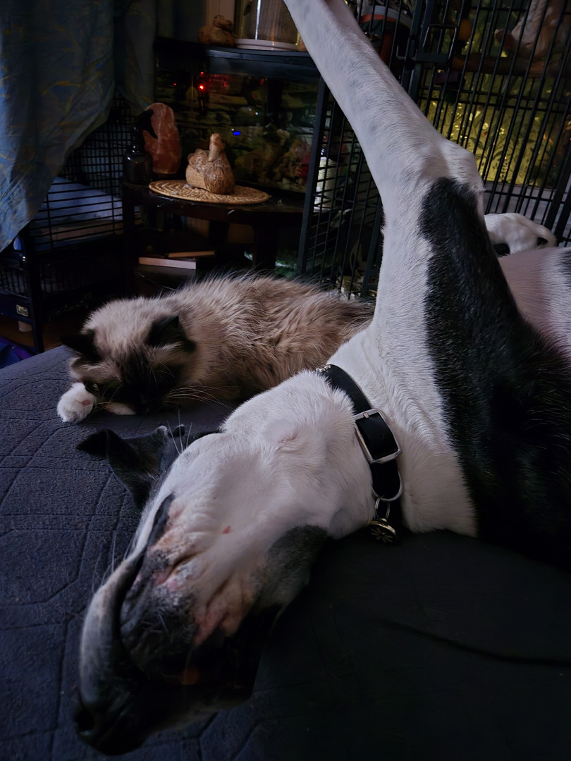 She is literally the Queen. Boses my husband around. Time for bed. Time to get up by digging her nails into him.