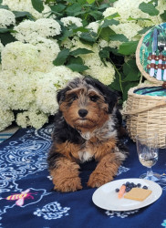 Milo is a very loving 2 year old Aussiedoodle. He is goofy and full of energy. He loves people and wants to kiss everyone!