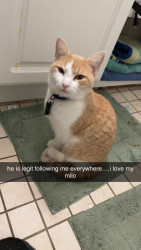 Milo is a rare intelligent ginger kitty who love snuggles. He loves to give pets and he loves to receive pets.