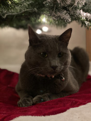 His favorite toy is his hanging mouse that swings in the doorway. His favorite treat is cheese!