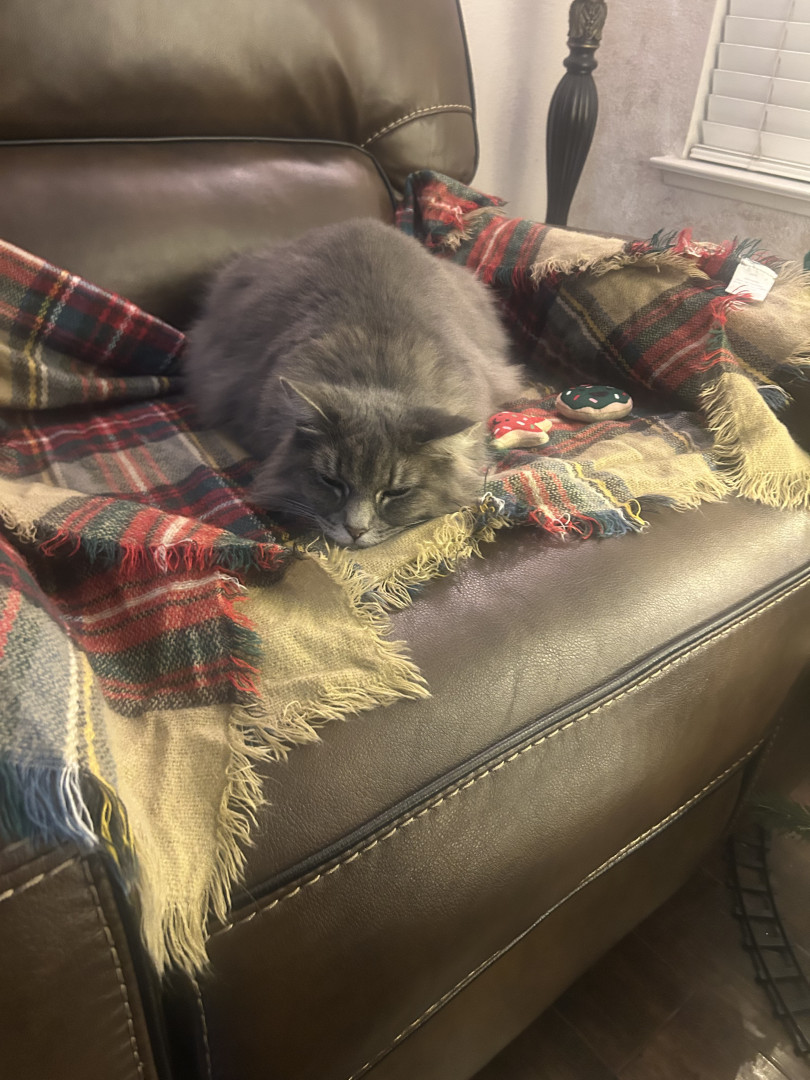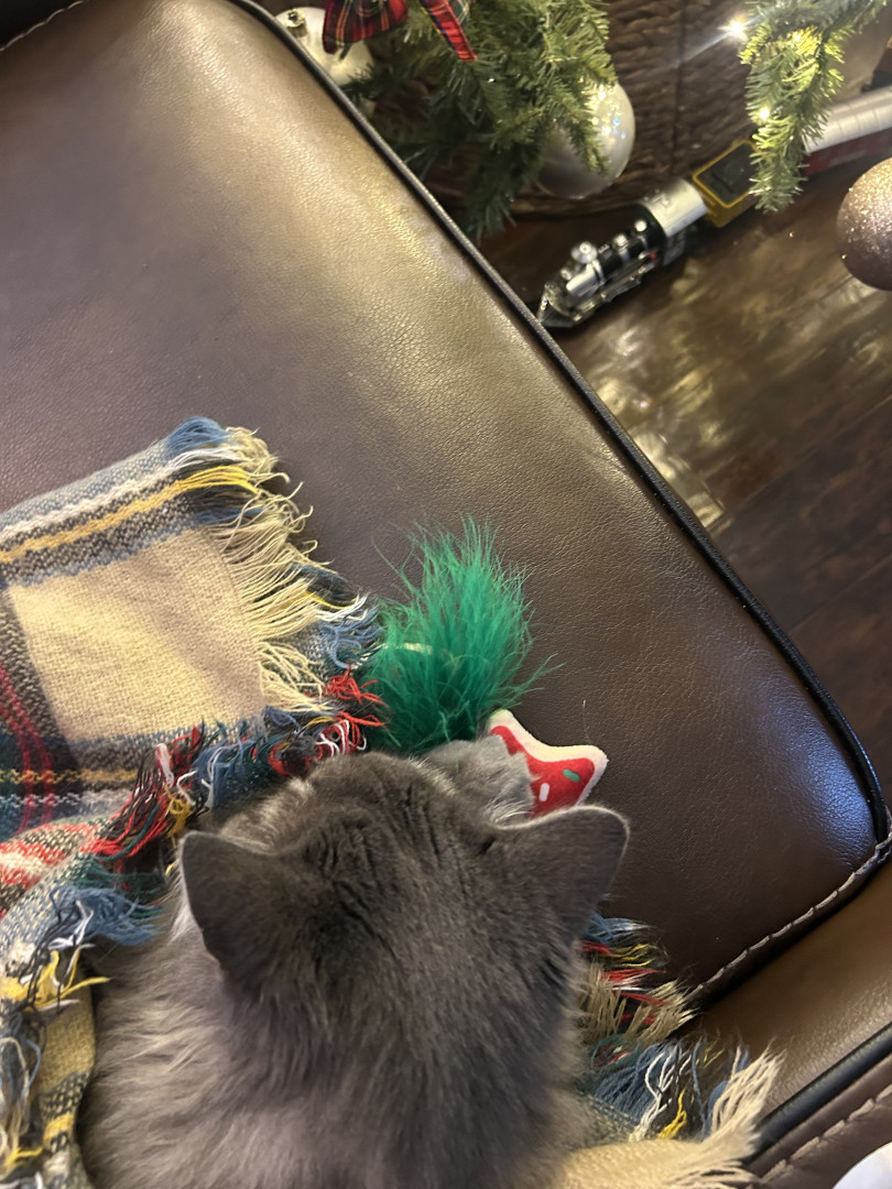 Milo’s favorite toy is her little mouse toy. No matter how many toys she has, she always seems to come back to it. She loves batting it around, chasing it across the floor, and pouncing on it like she’s caught real prey. Sometimes she’ll even carry it in her mouth and drop it nearby, clearly very proud of herself. She also really enjoys her scratching post. It’s one of her go-to spots, whether she’s stretching, scratching, or just hanging around it. It’s part toy, part comfort space for her, an