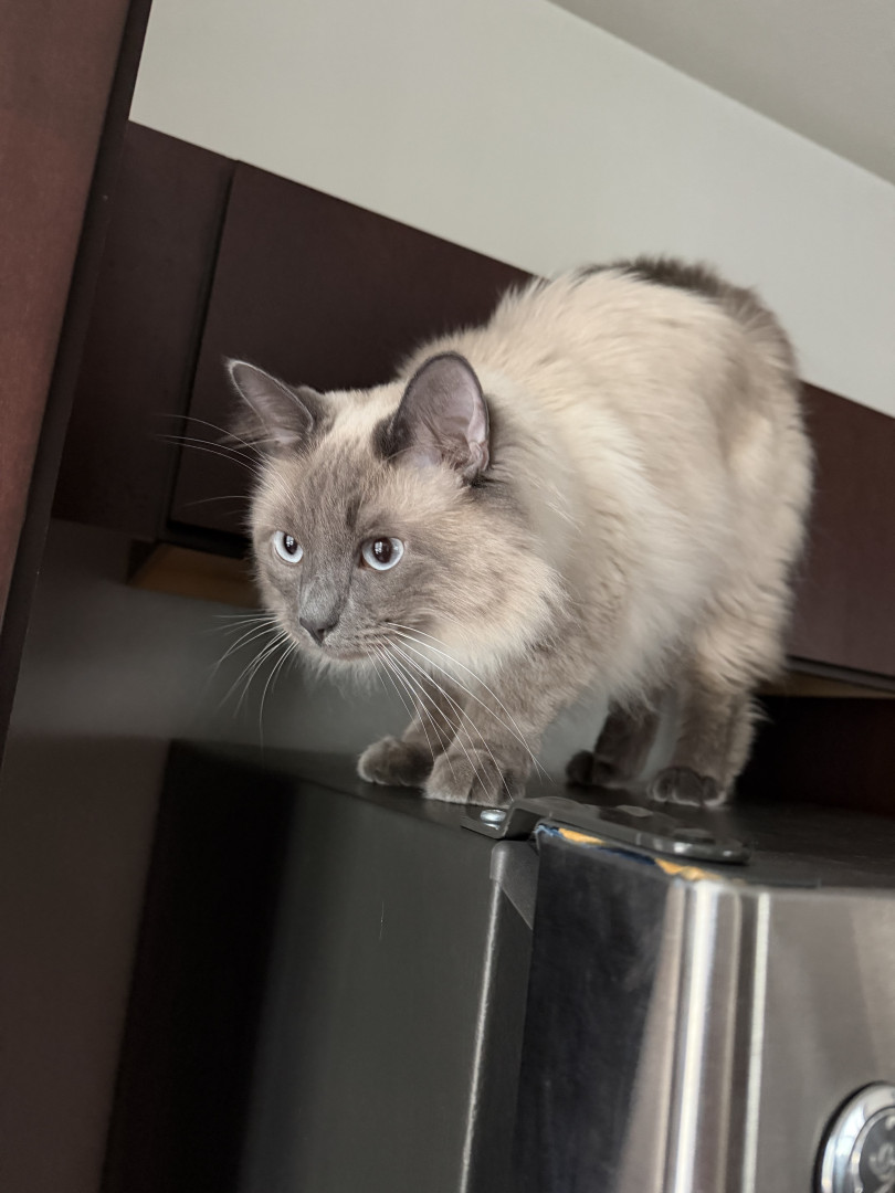 If Milo isn't trying to get into the cabinets, he's head butting you for attention