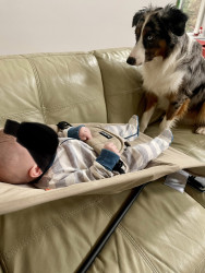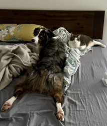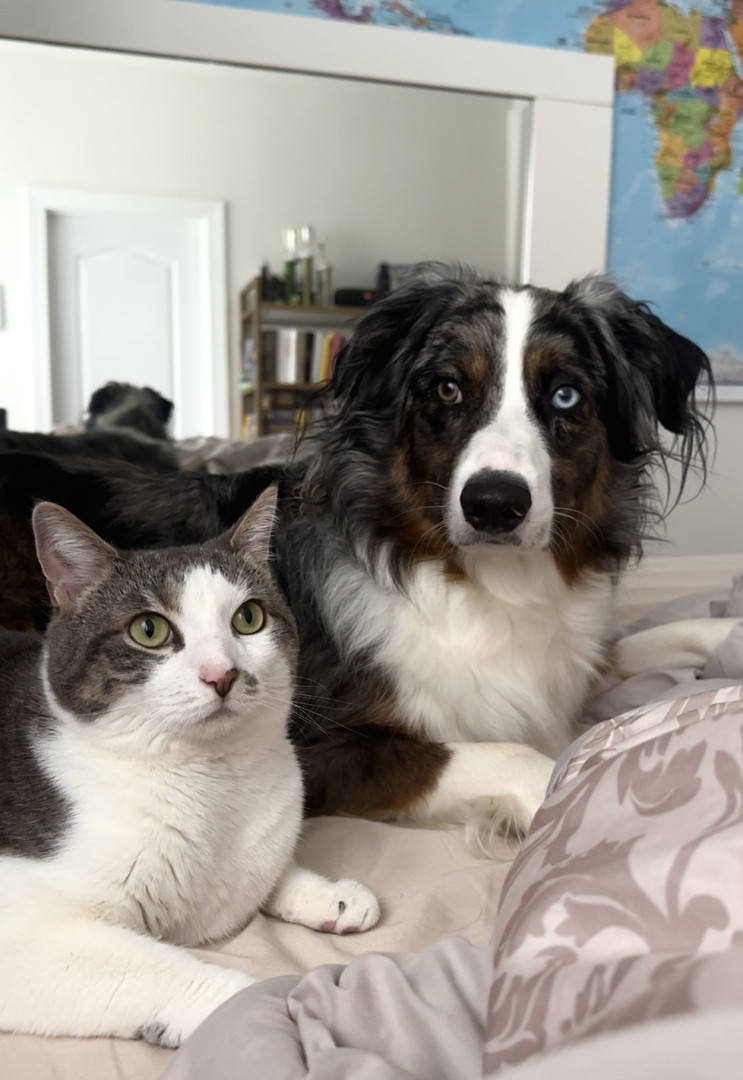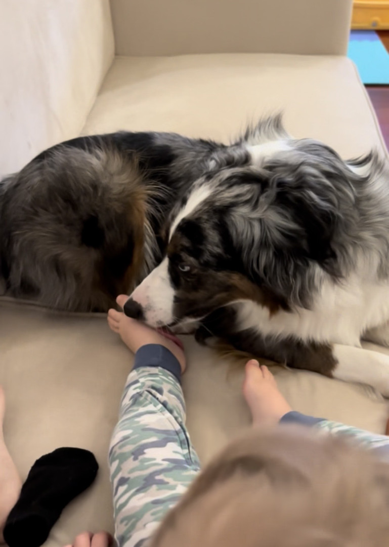 Milo aka Mooshi aka Mooshgoosh should be America’s favorite because—instant serotonin, every time! He’s my toddler’s best friend and self appointed security detail, plus the most patient big brother to Tiger (our huskypit hippo) and Penny & Pepper (the cats). Milo runs this house like it’s summer camp and he’s the head counselor. He’s a sweet old man trapped in a classically handsome, extremely good boy’s body.