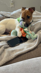His greatest quality is his energy, he almost never stops, he is always running, playing, jumping and moving his tail.