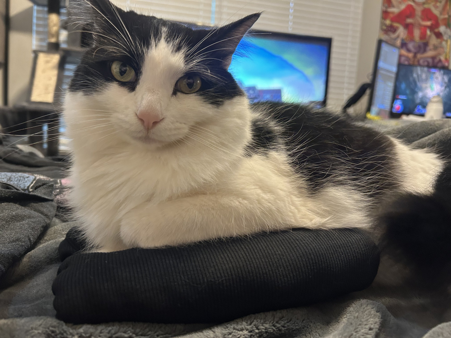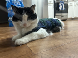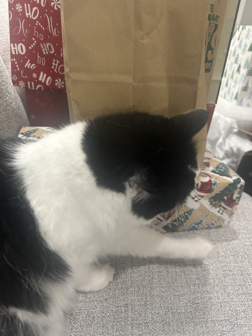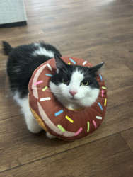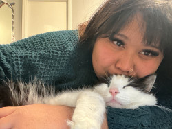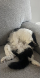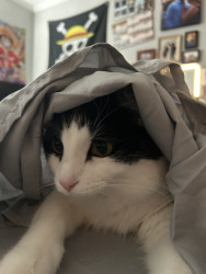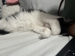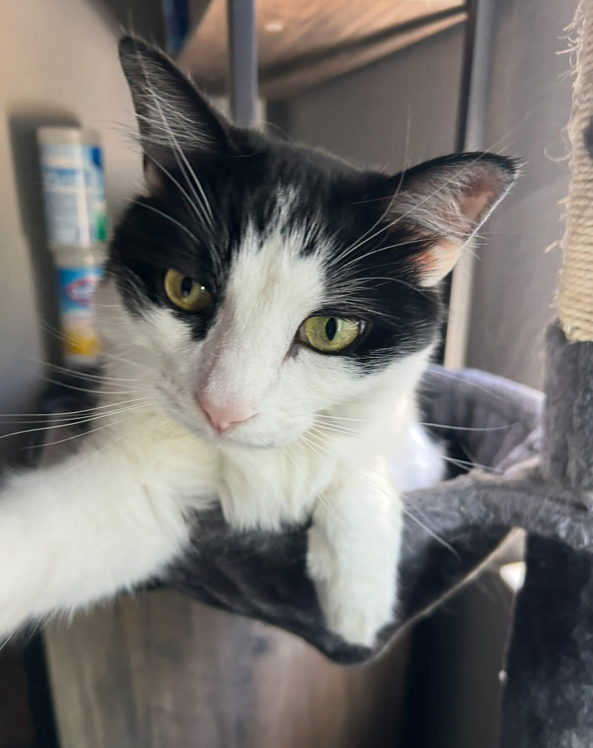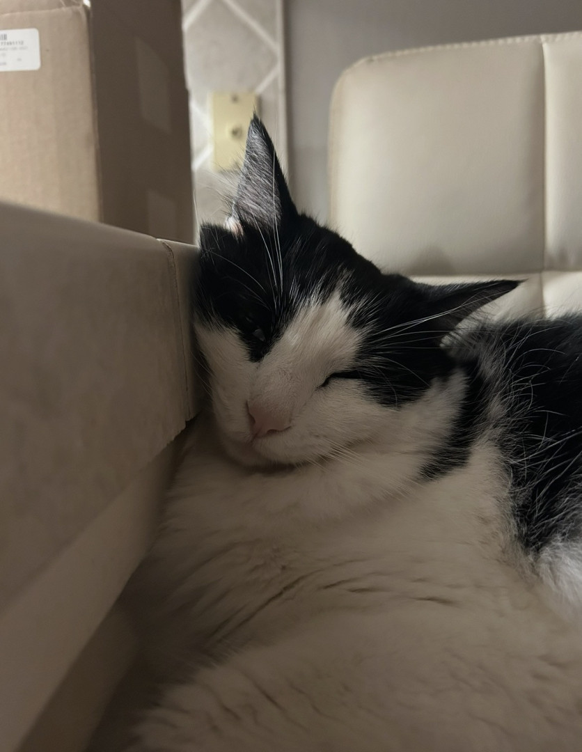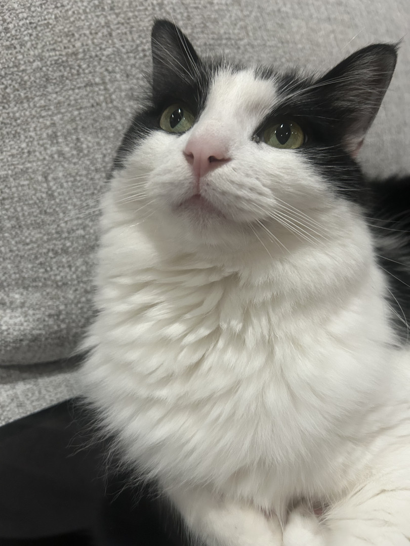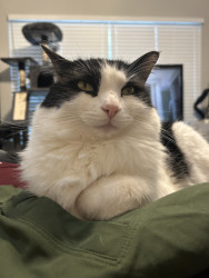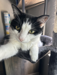 Milo is a chatty cuddle bug who loves affection, random zoomies, and lounging in the silliest ways.