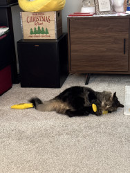 Learn MoreMilo loves tuna Delectables squeeze up treats. His favorite toys are his yeoww catnip banana and cigar.