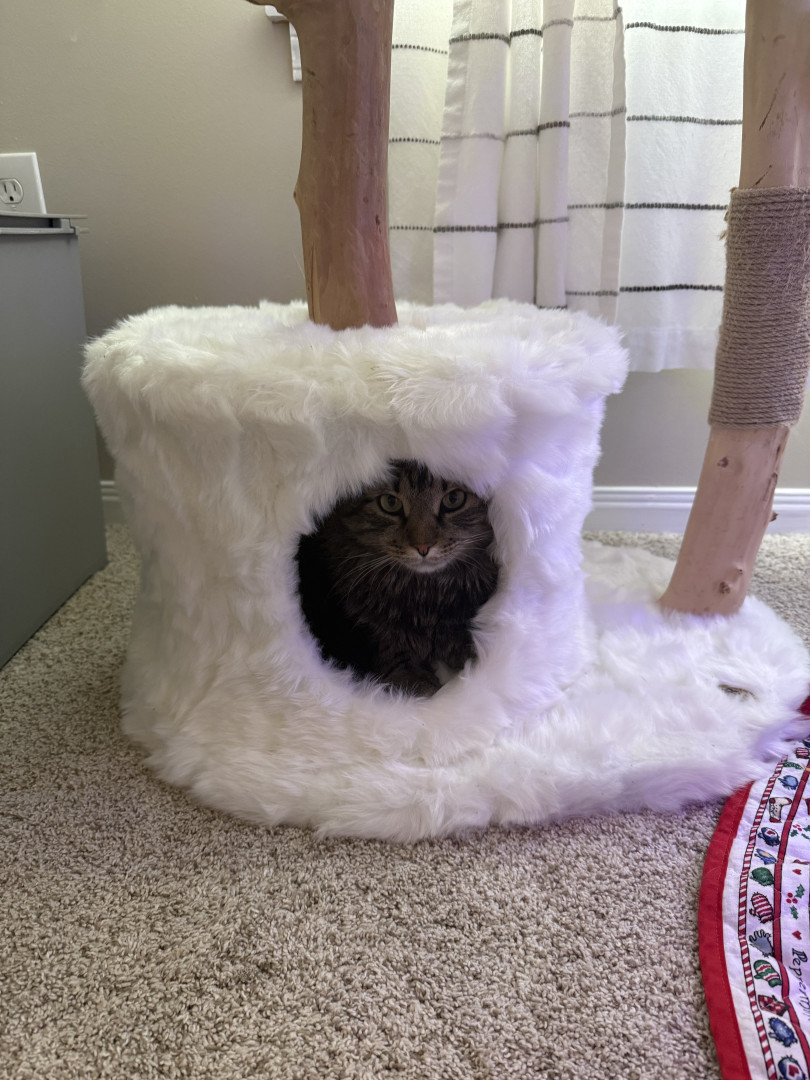 Milo should be America’s favorite because he is unique. We rescued him and he has been nothing but grateful and loving. He is a very relaxed cat, and nothing seems to bother him. He especially loves his new dad and follows him everywhere. He is always eager to check out new things and sounds. It’s his first Catmas with us, and he hasn’t even bothered the Christmas tree. He just all around the best boy.