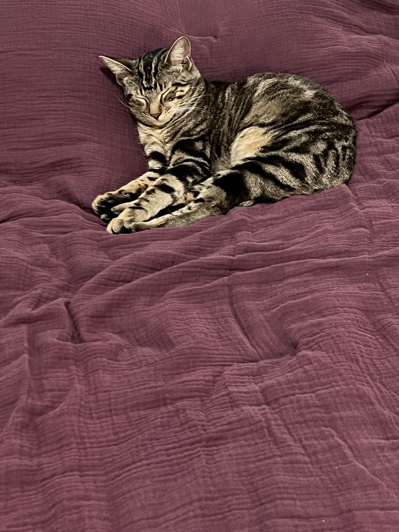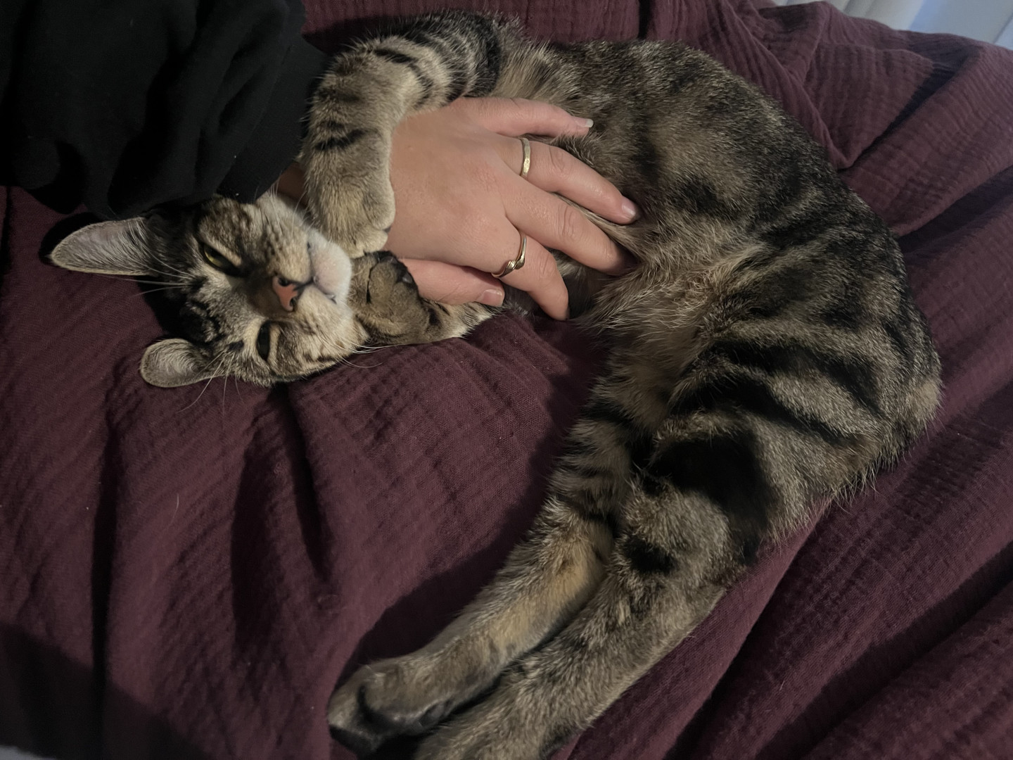 Milo should be americas favorite because she has come so far. I found her behind the dumpster at a gas station, first few weeks she wouldn’t let me touch her or come near her and then after being patient she blossomed into this amazing, loving cat. She has hiding such a huge personality and she’s finally able to show it. She’s a little cuddle bug who loves being held like a baby and loves to play. She is the perfect example as to why people should rescue and not go to breeders.