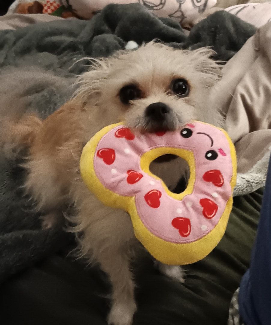 His favorite toy is a white fluffy ball, we gave him when we took him in.