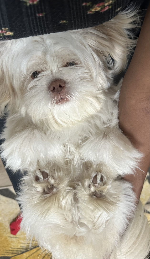 Milo is a lavender shih tzu and he has a red nose as well as his eyes go from hazel color to a sometimes green color