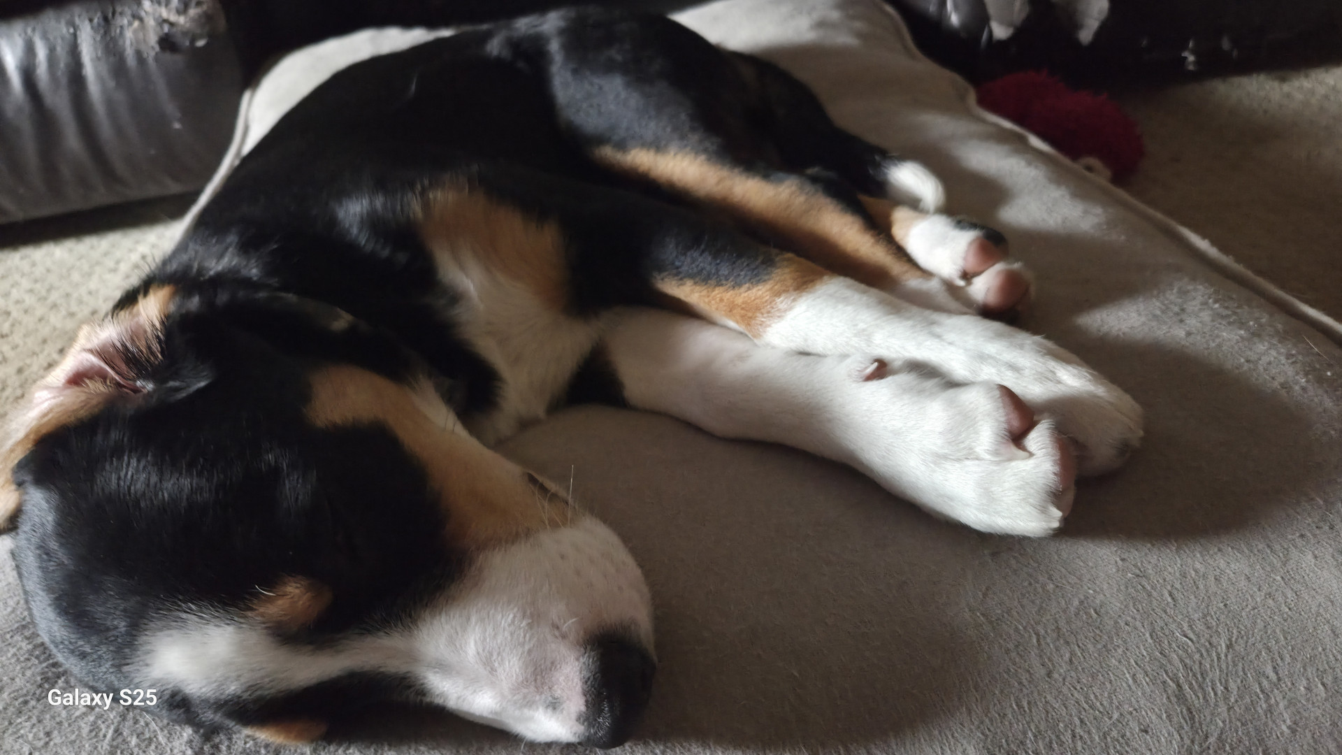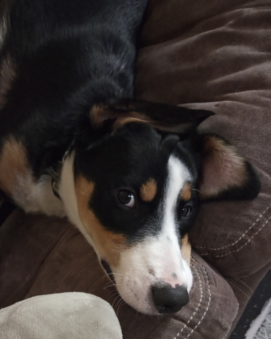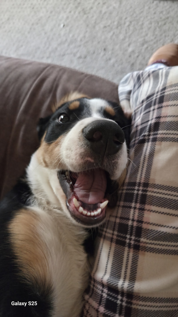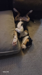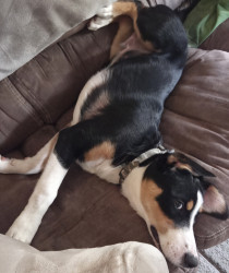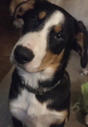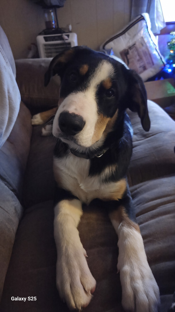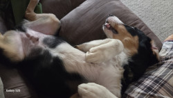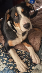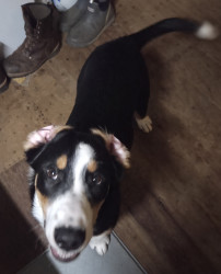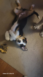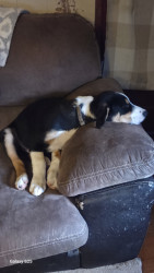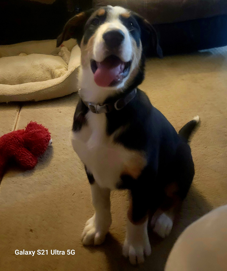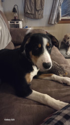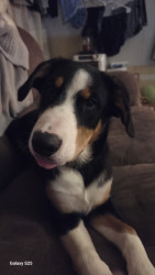 Milo is 22 weeks old. He is a Australian shepherd lab mix. He loves to play and loves his lamb. He is an absolute goof ball.