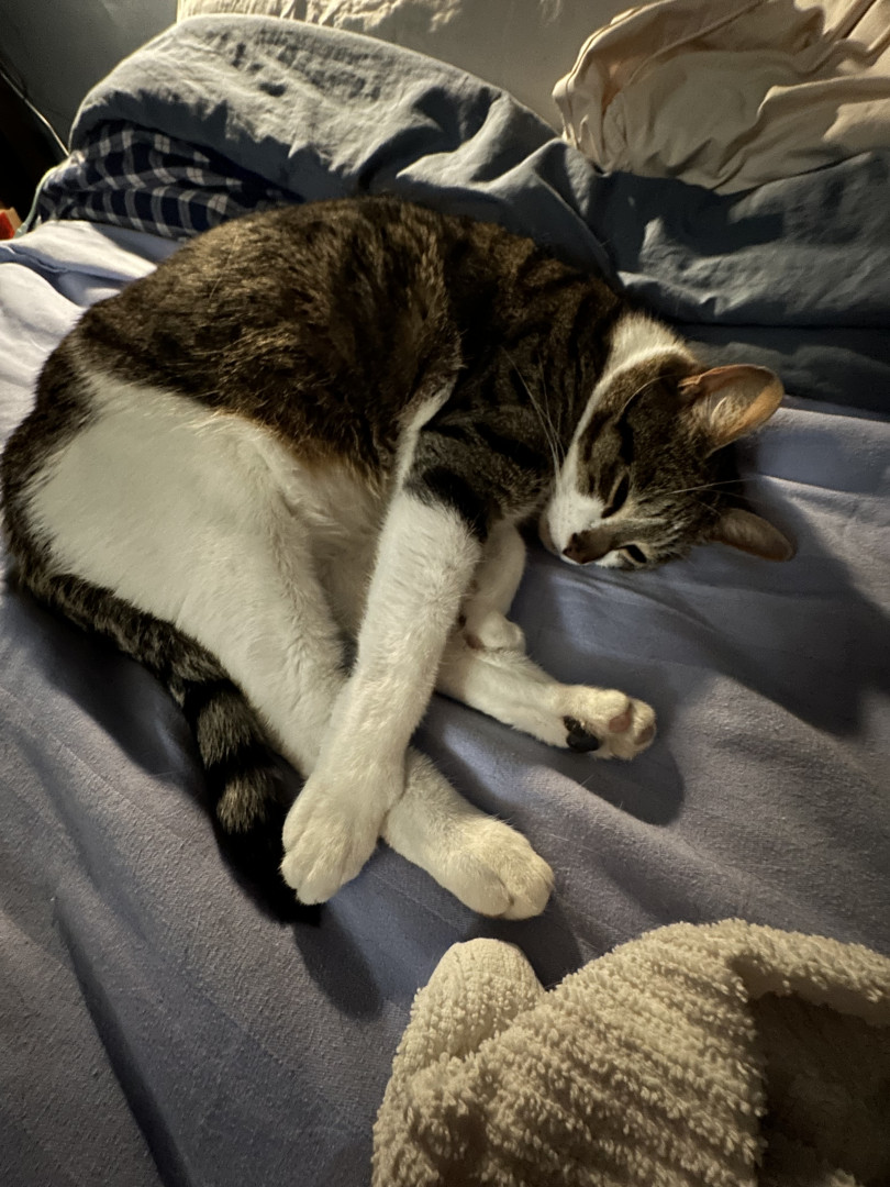 Milo is so different from any other cat that i’ve visit at a friends home or outdoors. He takes walks after i get home from work, he will not leave the step til i go out, he knows yes and no, he understands when i say up, when we go in the house, he knows how far down the street we go or safe and turns around but my favourite is every couple minutes he will stop and wait for me if I'm slowing him down but also wants that touch of my hand and tell him that he’s a good boy! He’s my protector.