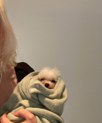 Mimi has so many sweet and hilarious quirks about her… she has been seen drinking water in a handstand position, going pee with her back legs both lifted in the air… but her most unique quality is just how TINY she is. She blows people’s minds every single day - the amount of attention she gets out in the world is actually that of a celebrity. People have even cried at the sight of her tiny self. She measures a dollar and a half long.