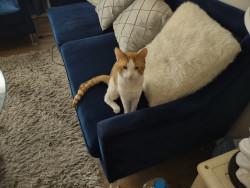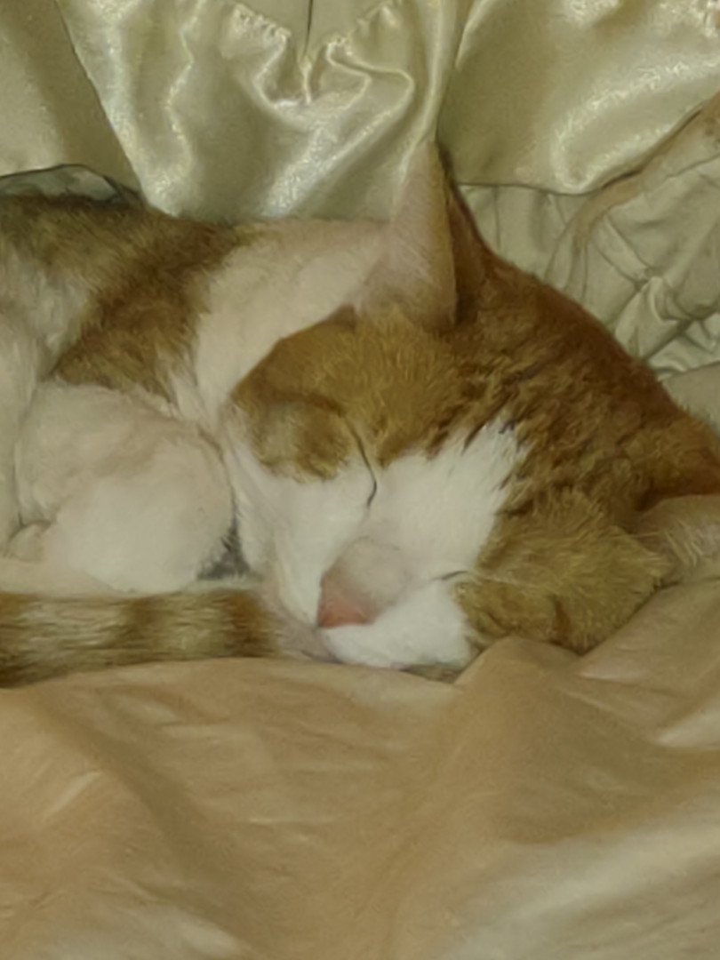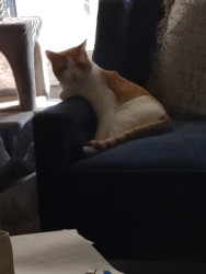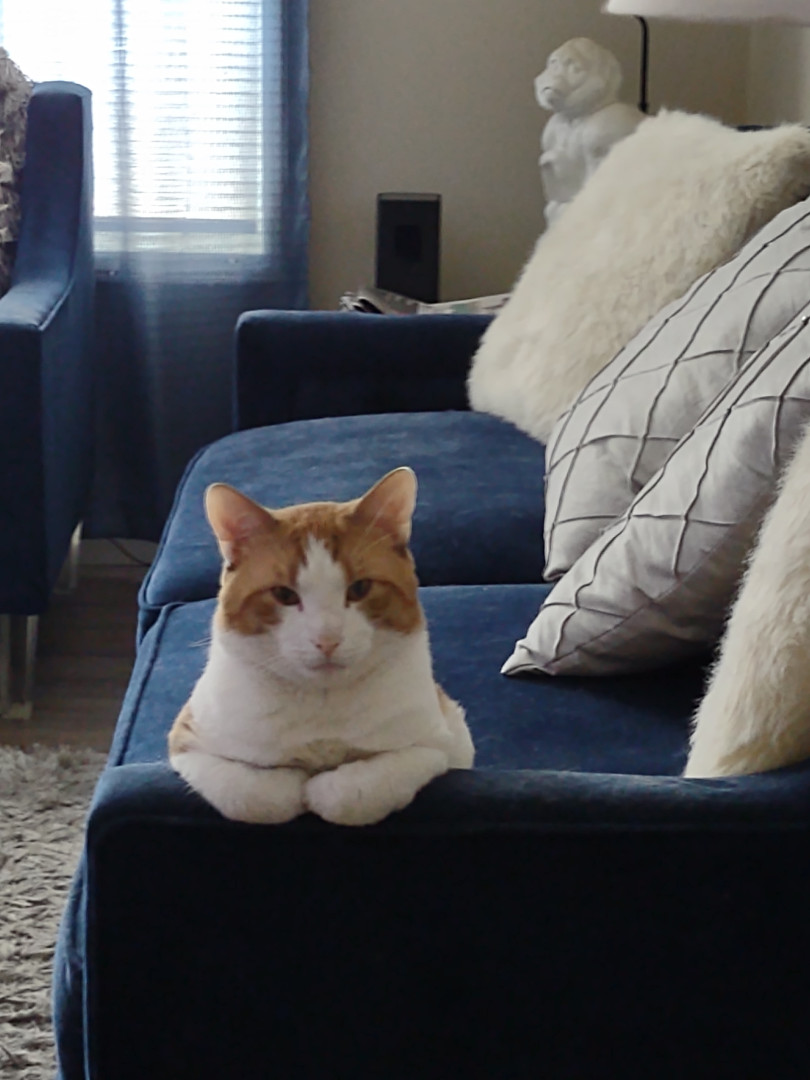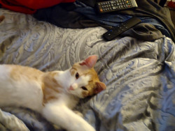 His emotional support and his beauty. He never really leaves my side. If I leave the room, he's following. When my pain is unbearable, he's there beside me to comfort and distract me from the pain. He is the prettiest cat with his orange and white fur and golden eyes. I thank GOD for him, if it were not for Minion, I don't think I would be here now. He truly saved my life. He sat next to me the whole time while I wrote my father's obituary. He's so loving.