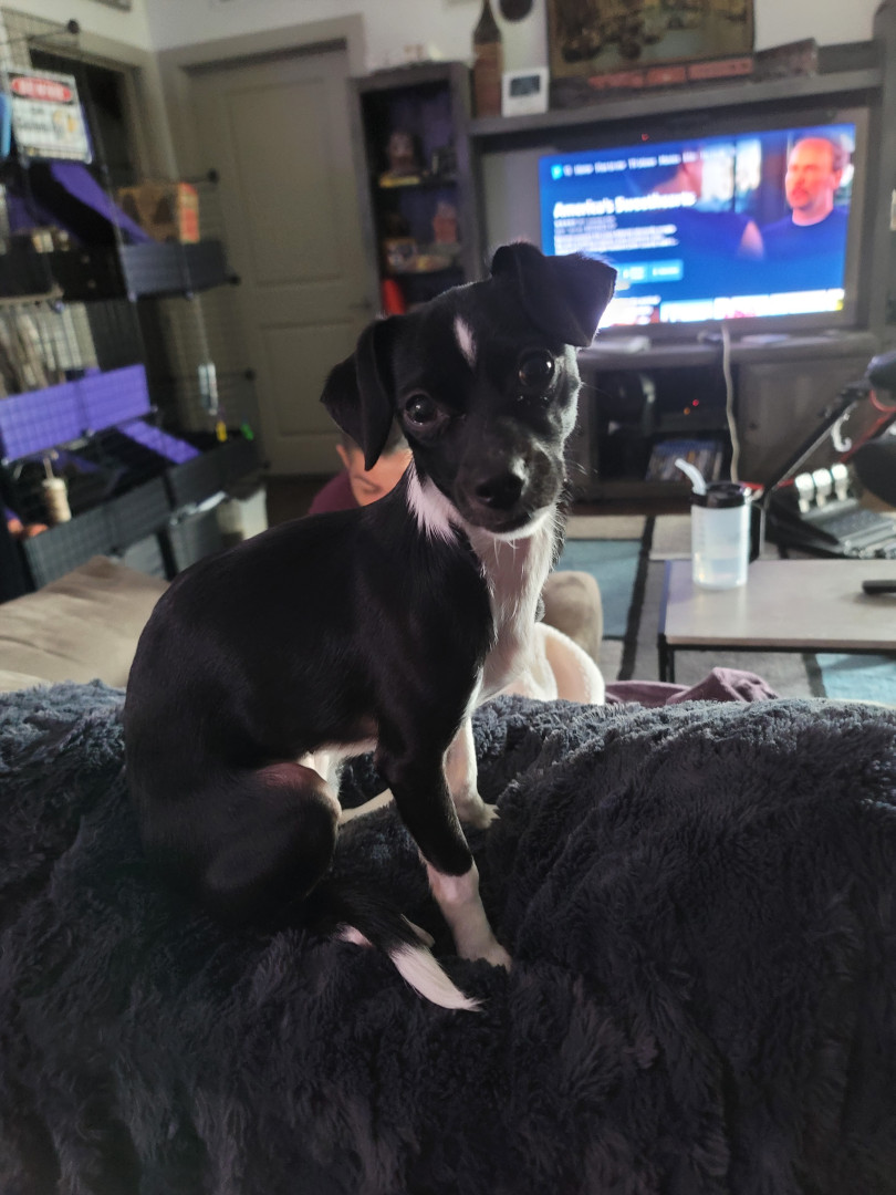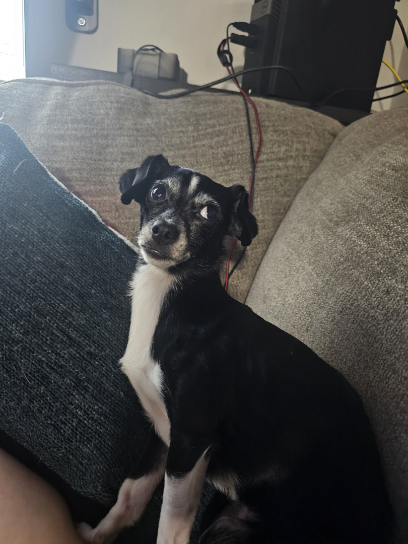 A crazy chihuahua full of love, she only wants to be pet but barks and scares away the humans. And she protects me more than anyone else.