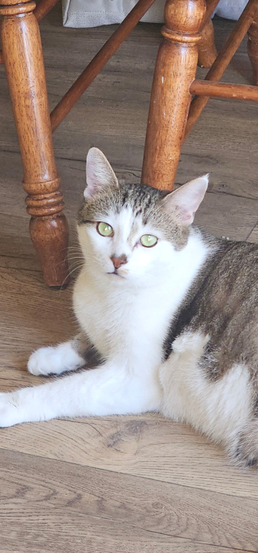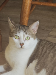 Minx it's a year and a half old. He does not meow much, but he barks. Yes, that's what I said he barks. People don't believe me