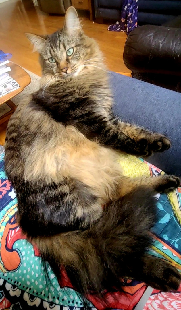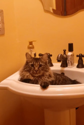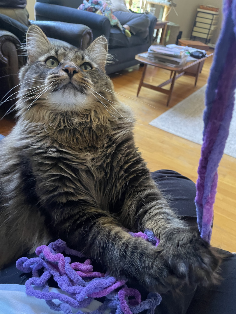 My husband built a catio that is big. He loves to run around in it at night with his sister. His most favorite thing to do is walk on a leash in the yard. When he wants to watch tv, he will sit in front of it and waits for someone to turn it on. His fur is so luxurious and like me to brush his coat. He loves to be petted and spends a lot of time just laying beside me and loves belly rubs.