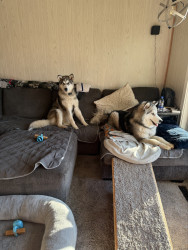 Our Alaskan Malamute pups are now 11 months old! They are well behaved and very friendly pups! They are both “talkers”