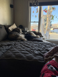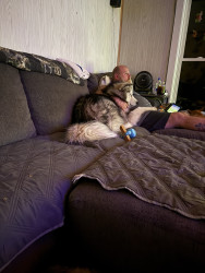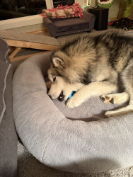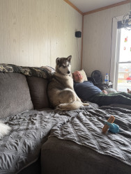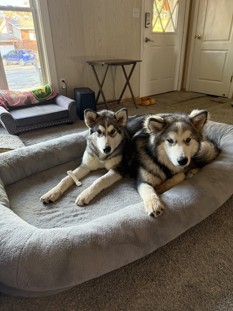 They are fast learners and truly are loving loyal pups! They think they are lap dogs especially Nanook! They are friendly. Nanook likes to play shake! He wants you to shake his paw and then tell him he’s a good boy! 🤣 Mishka is the one with an attitude and Nanook allows her to dominate to a point!