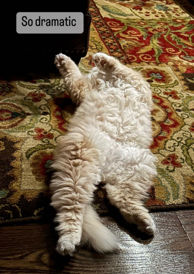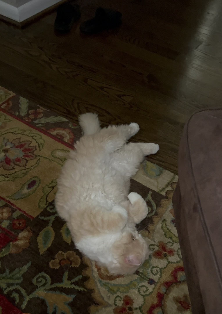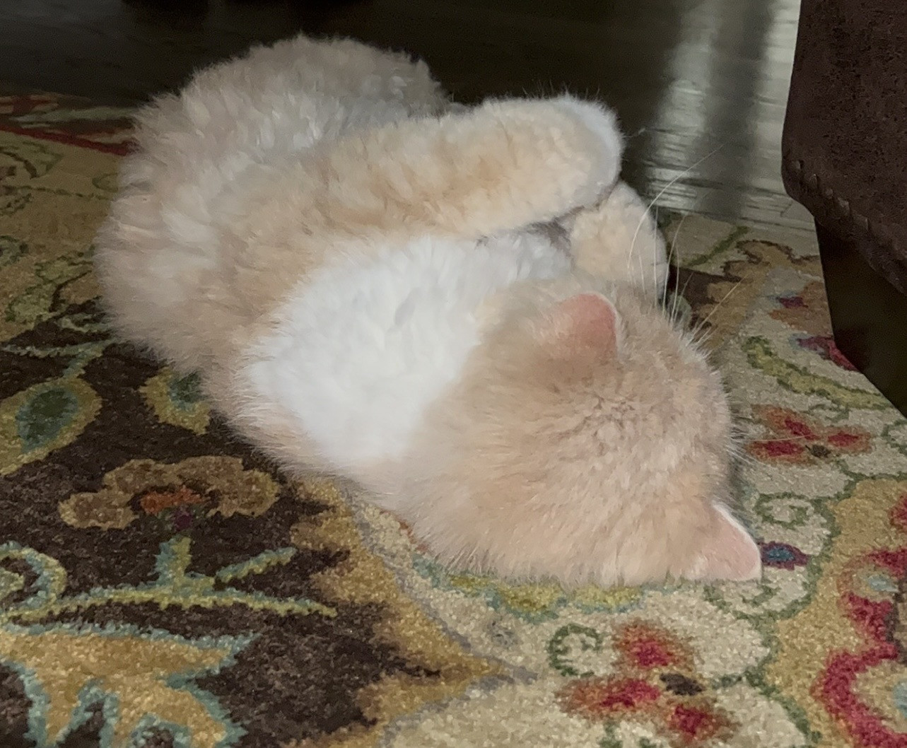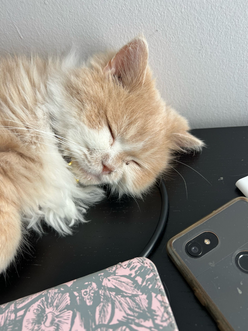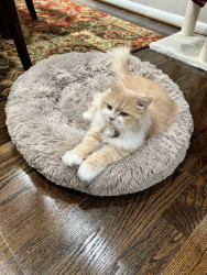 Mishmish’s unique quality is the rare blend of calm elegance and playful softness. With a naturally regal posture and expressive, thoughtful eyes, Mishmish carries a quiet confidence that feels soothing to be around. Yet in moments, that dignity melts into pure fluff—rolling over, stretching out, and inviting comfort and trust. Mishmish communicates love without noise, using gentle body language and presence. Wrapped in cloud-like apricot-and-cream fur, Mishmish radiates warmth, serenity.