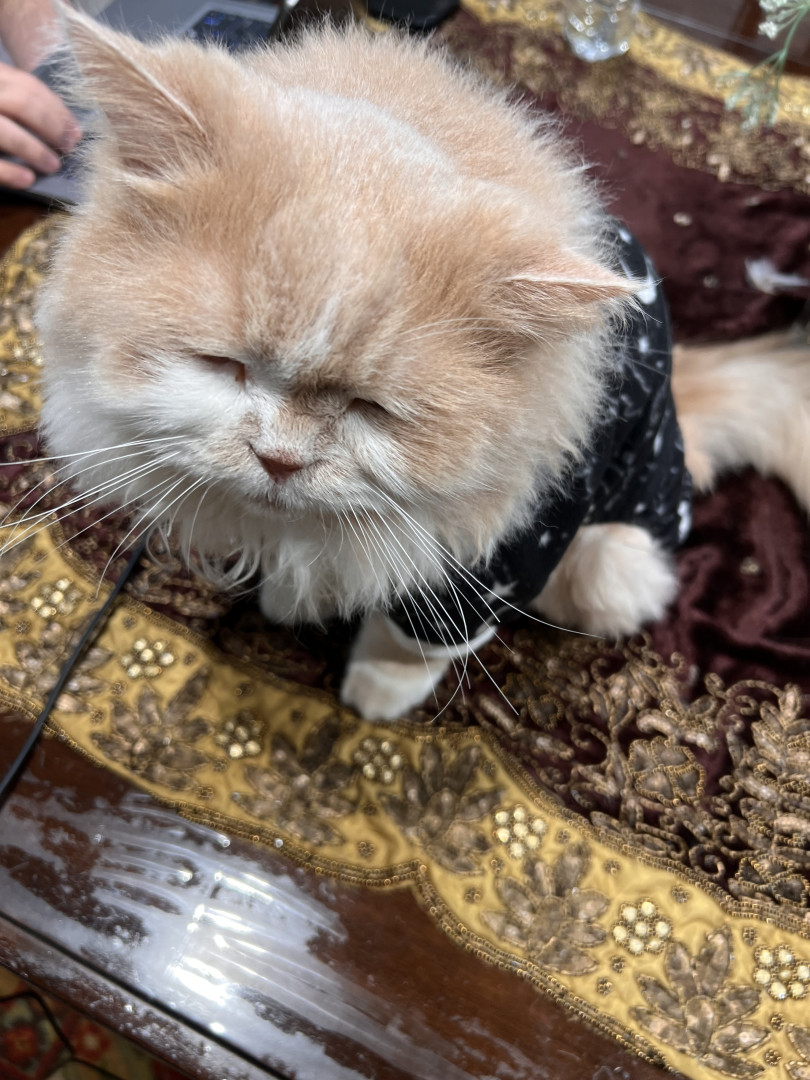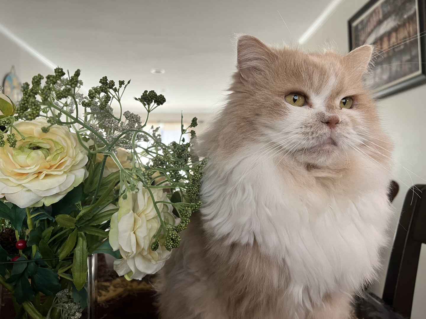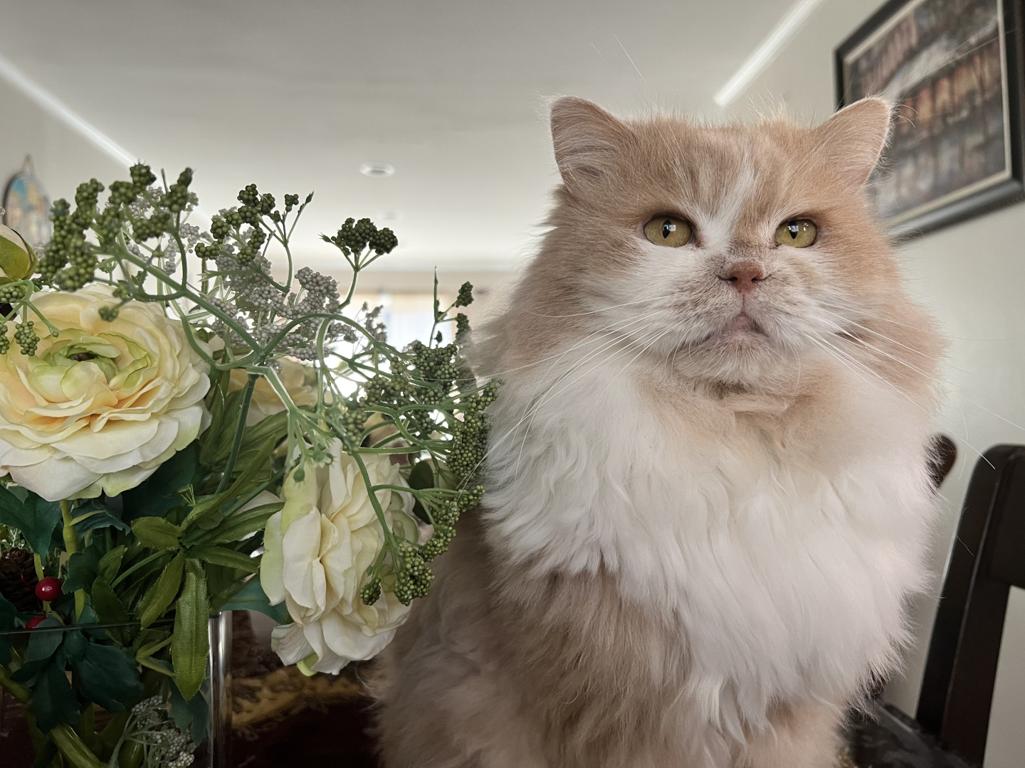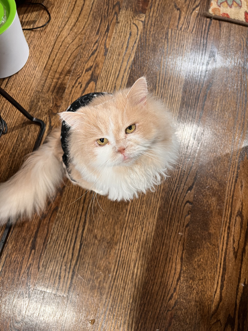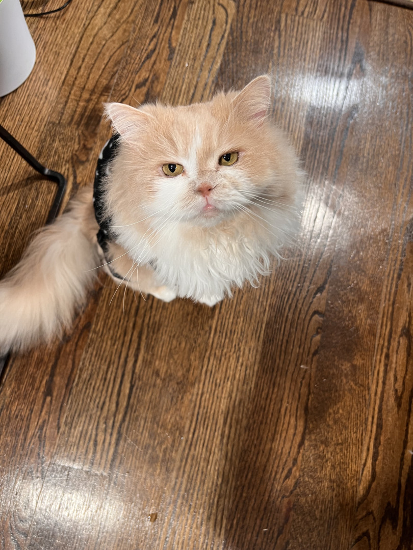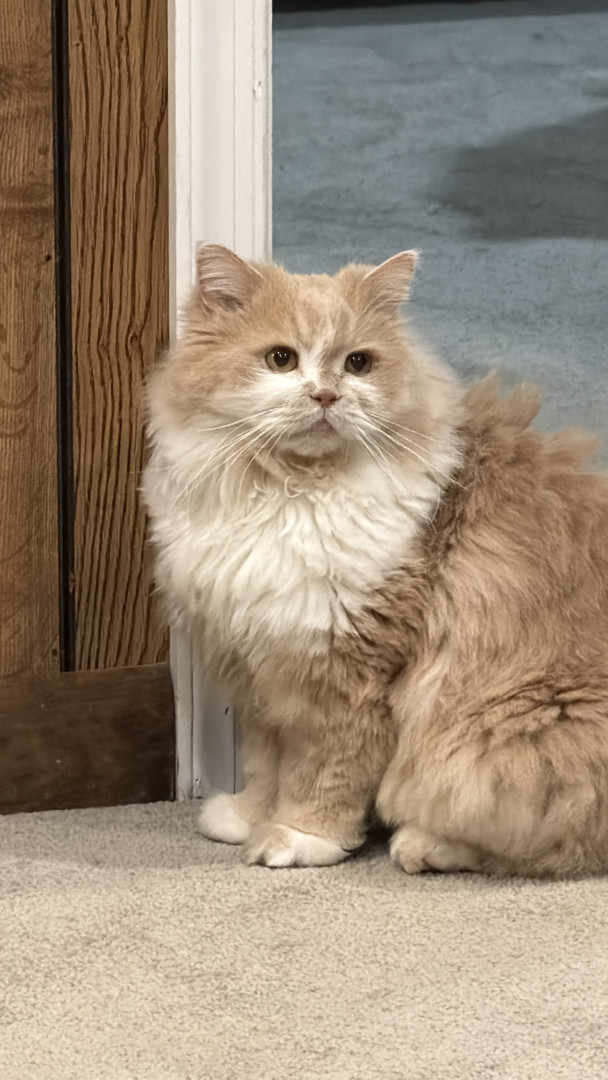 Mishmish is a fluffy apricot-and-cream dream with wise eyes, a regal pose, and a playful heart, turning every sunbeam into warmth.