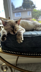 This is Miso, my snow lynx bengal kitten with ice-blue eyes and main-character energy. She’s curious, bold, wildly affectionate, and somehow
