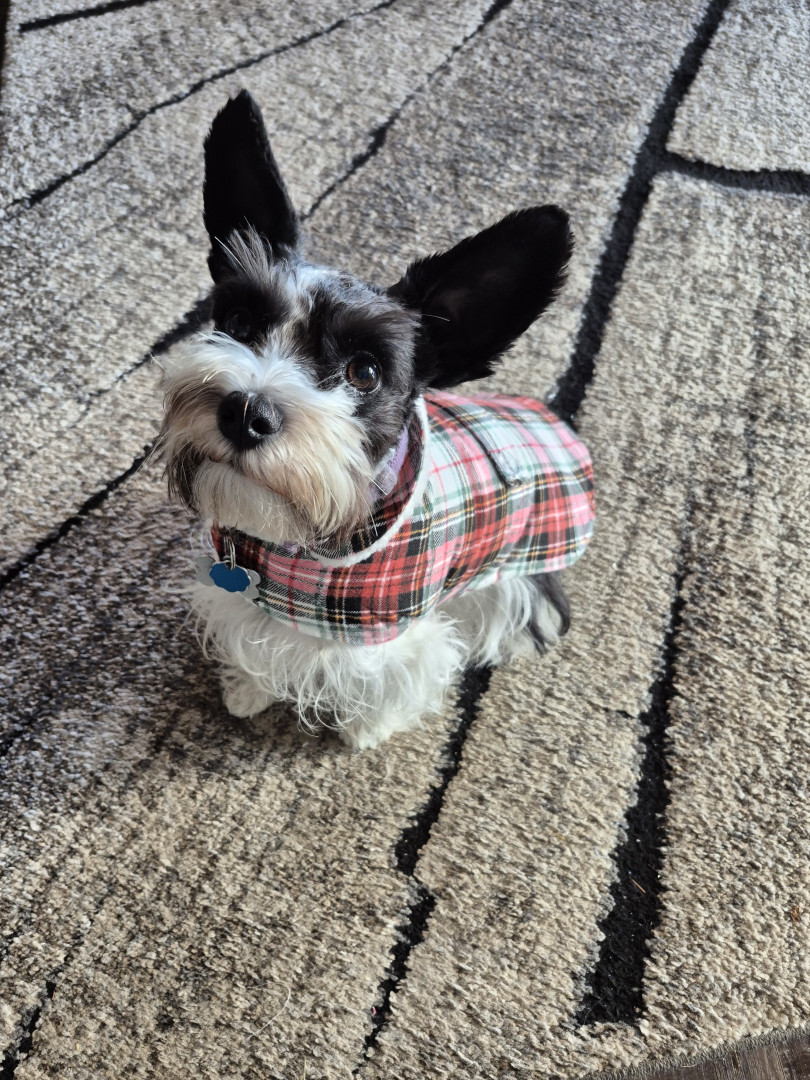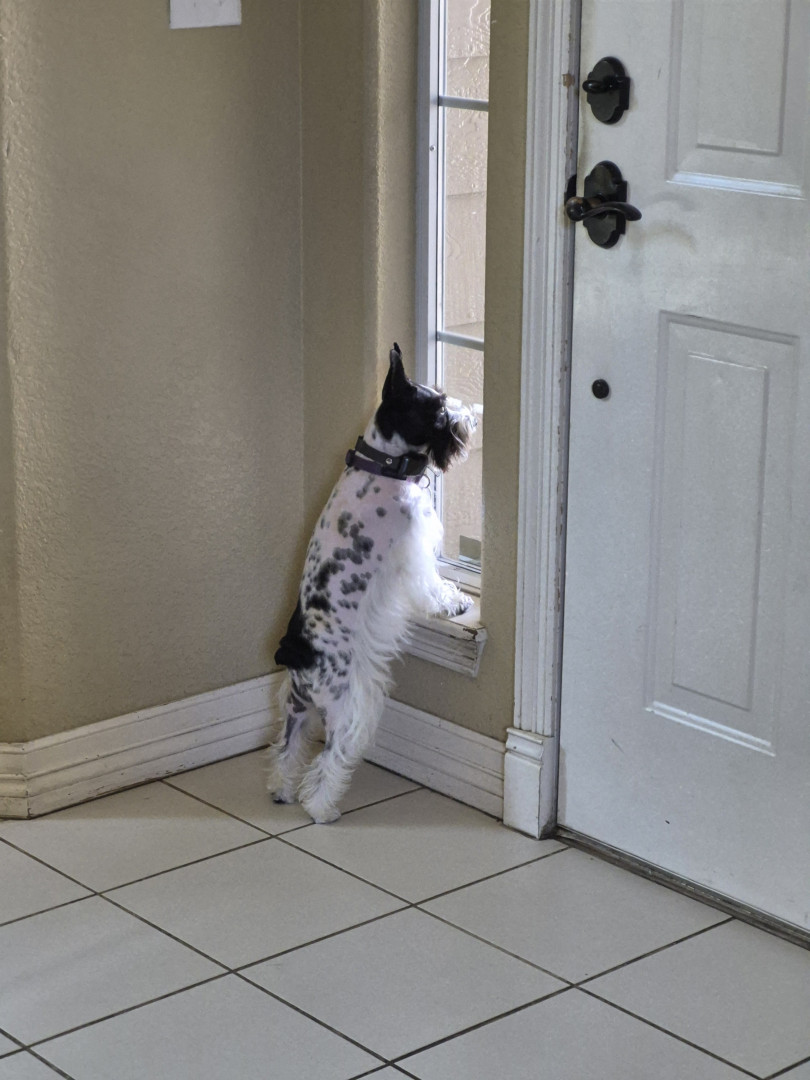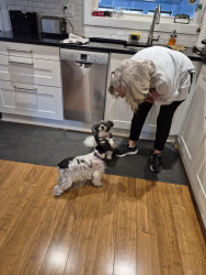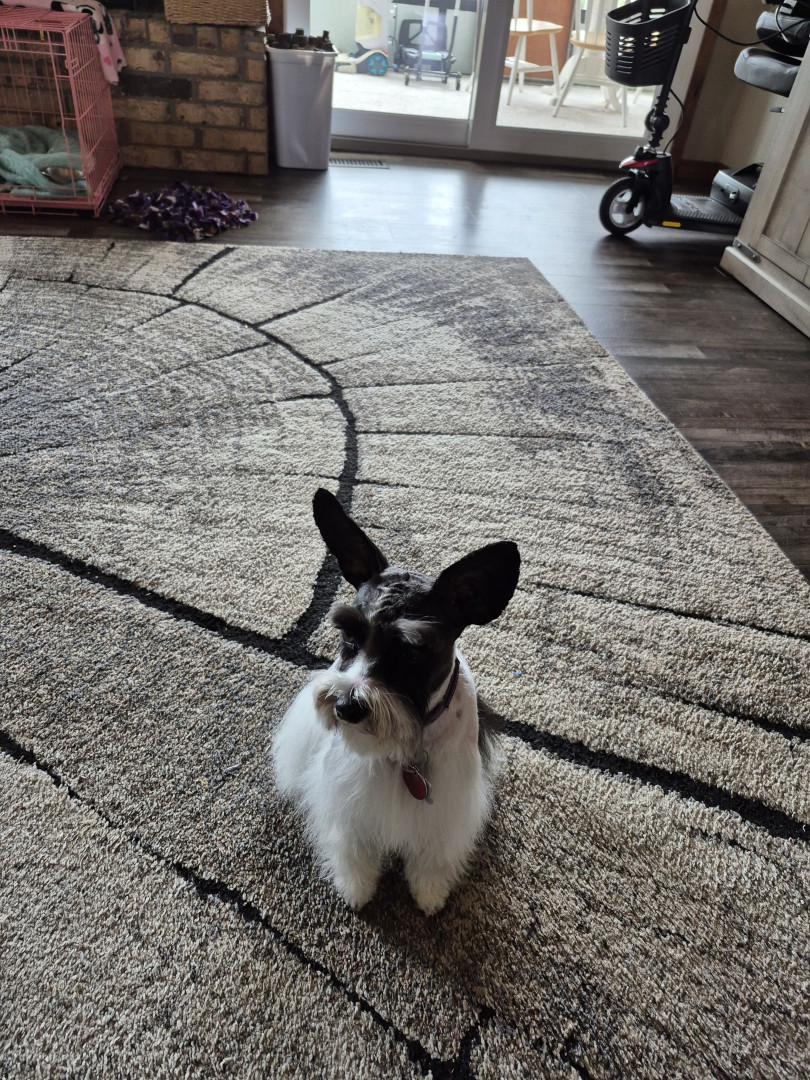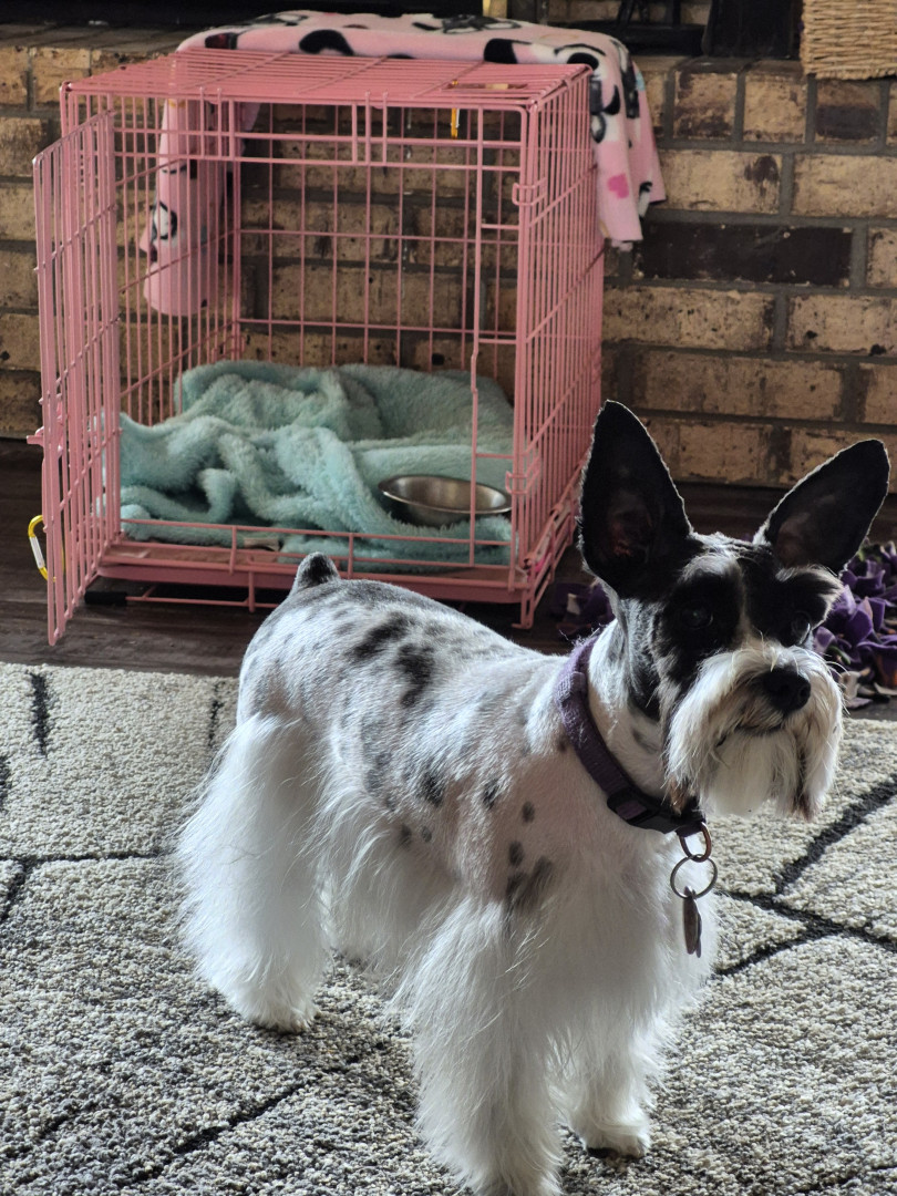 She is a Doggy Diva. She knows she is beautiful and lets everyone she meets know as well. She has all the characteristics of a pure bred mini-schnauzer. 100% Diva!