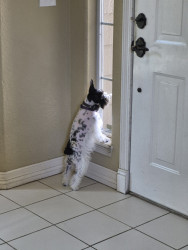 She brings us joy every day. Reba gets lots of attention due to her party color and unique markings. Everywhere she goes she gets stopped for cuddles and hugs.