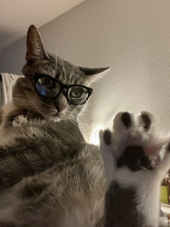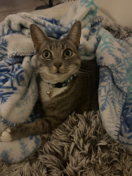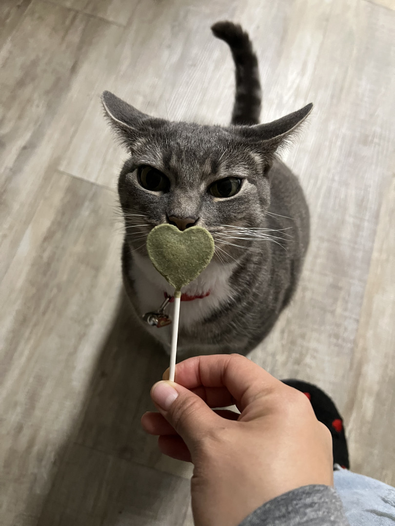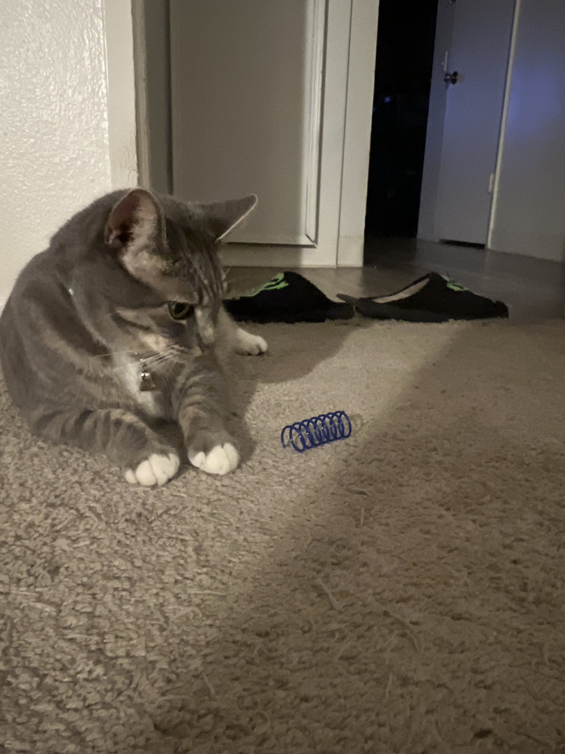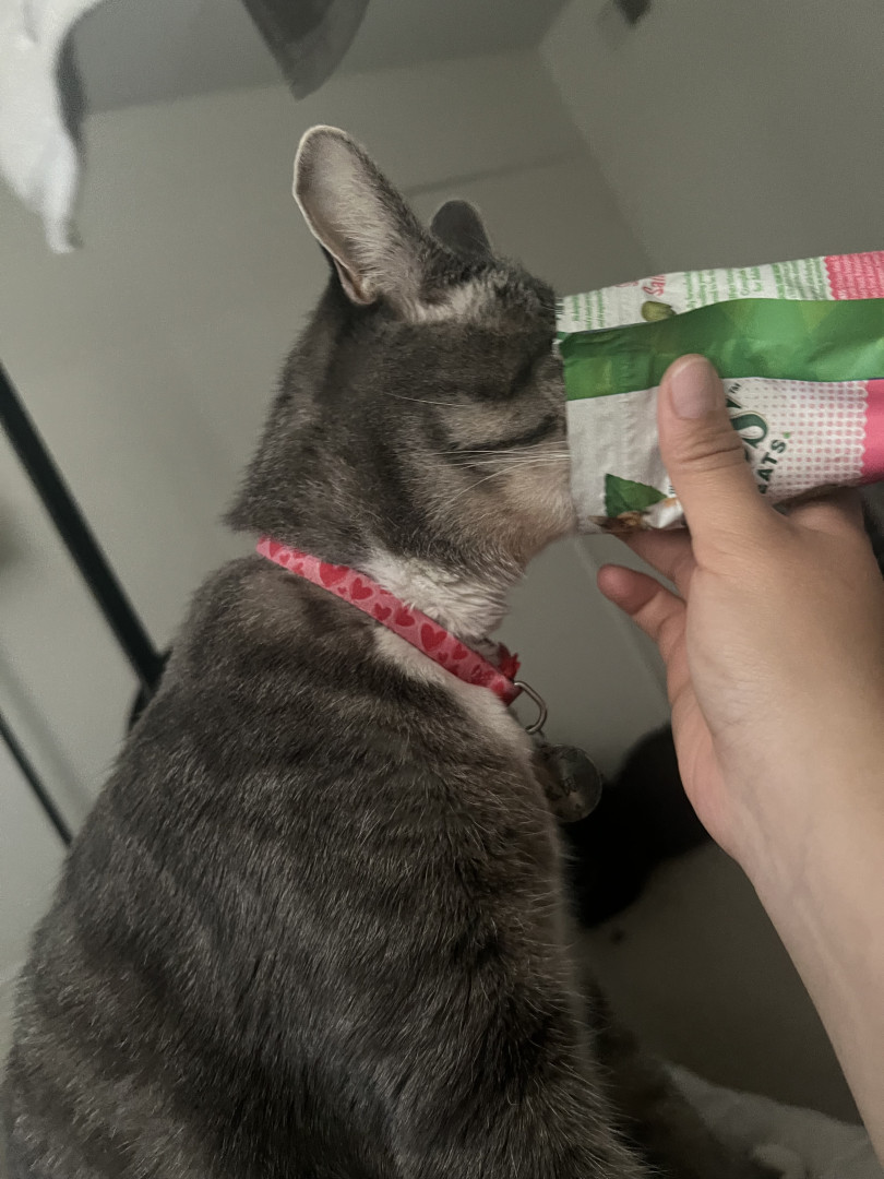 Learn MoreMiss beans loves her bonker treats, lickables, and dried up tuna. Her current favorite toys are plastic springs and water caps. She loves to lick plastic bags.