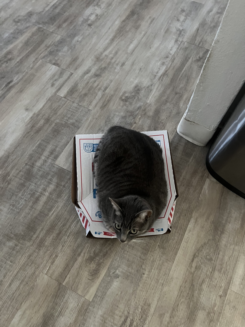 Always manages to squish a pizza box with her weight and help us keep warm during the winter.