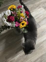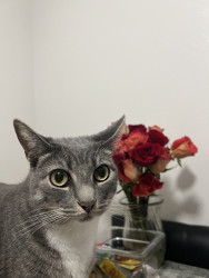 Miss beans is a sweet cuddly cat who loves to give kisses and cuddles. She’s the only cat I’ve known who loves to smell pretty flowers.