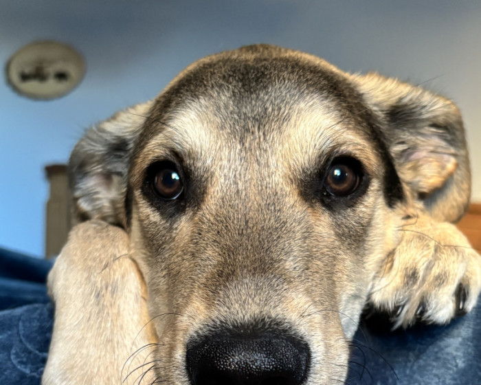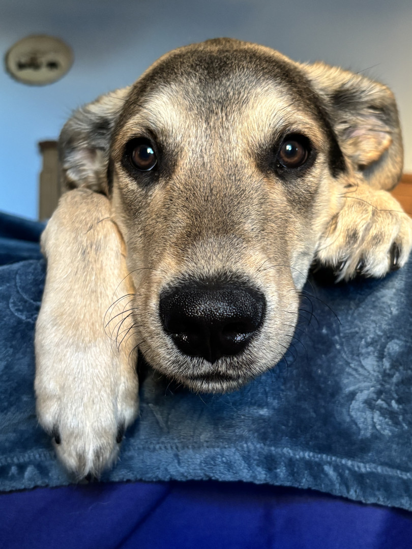 She’s full of mischief, lovingness and wants to explore all she can. She brings us much joy and is a great walking partner and loves to snuggle on the couch.