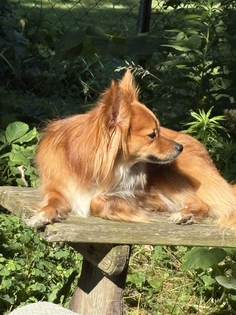 She is definitely a poser who although an instant doorbell at times loves attention. She loves the beach and water and to explore on her own