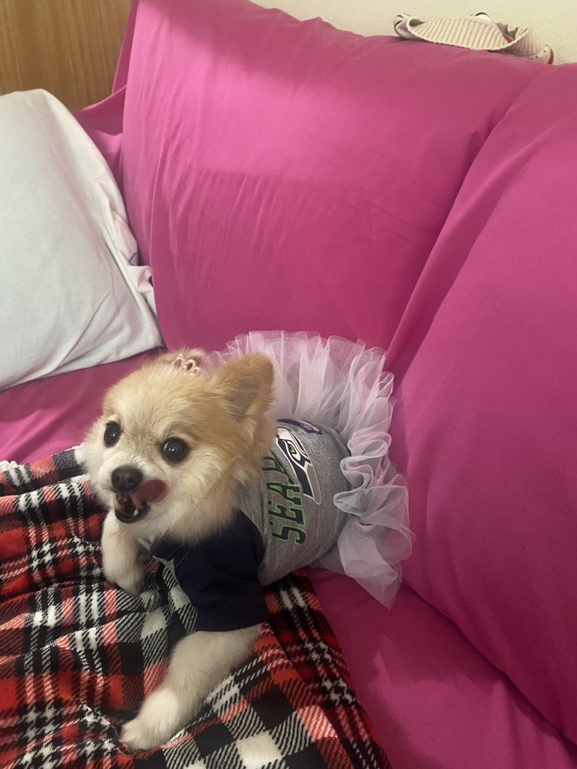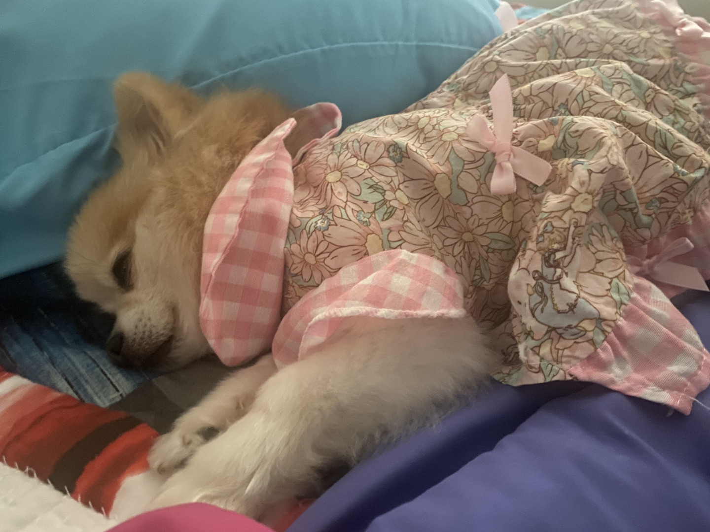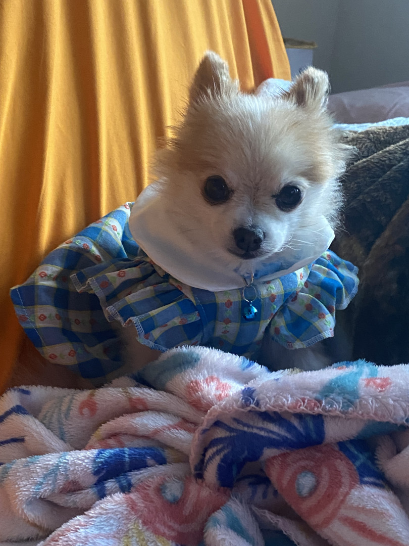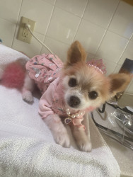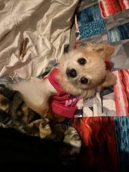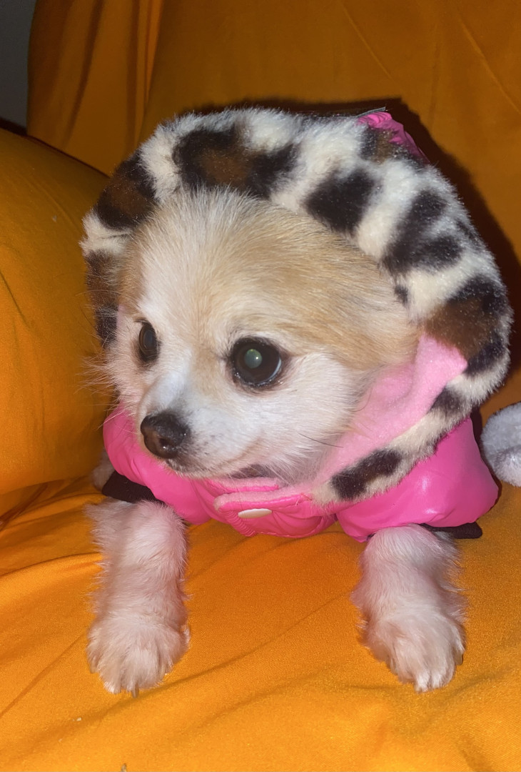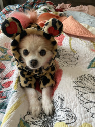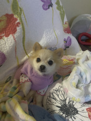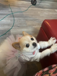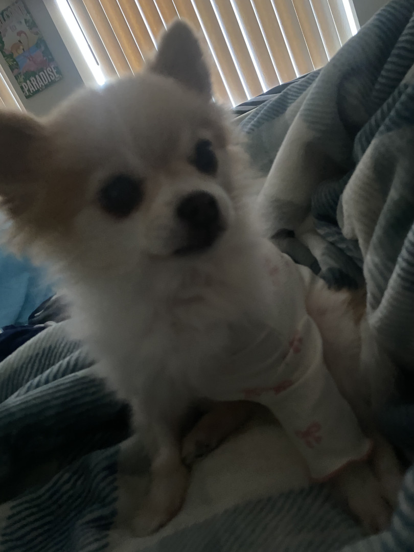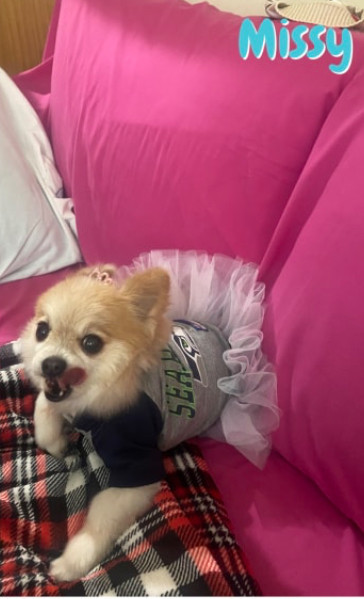 Missy , is so Adorable & Sweet . She has lots of clothes & luvs wearing them . She wears everything so proudly & cute . Missy , should be America’s Favorite dog Due to her Sweetness & Cuteness & personality. I, Promise u will Want to Pet her & just Love on her Once you meet her .