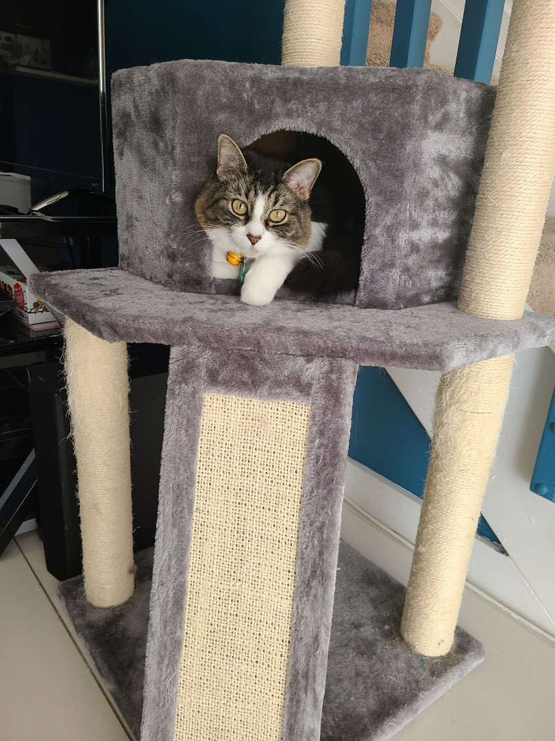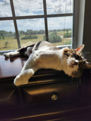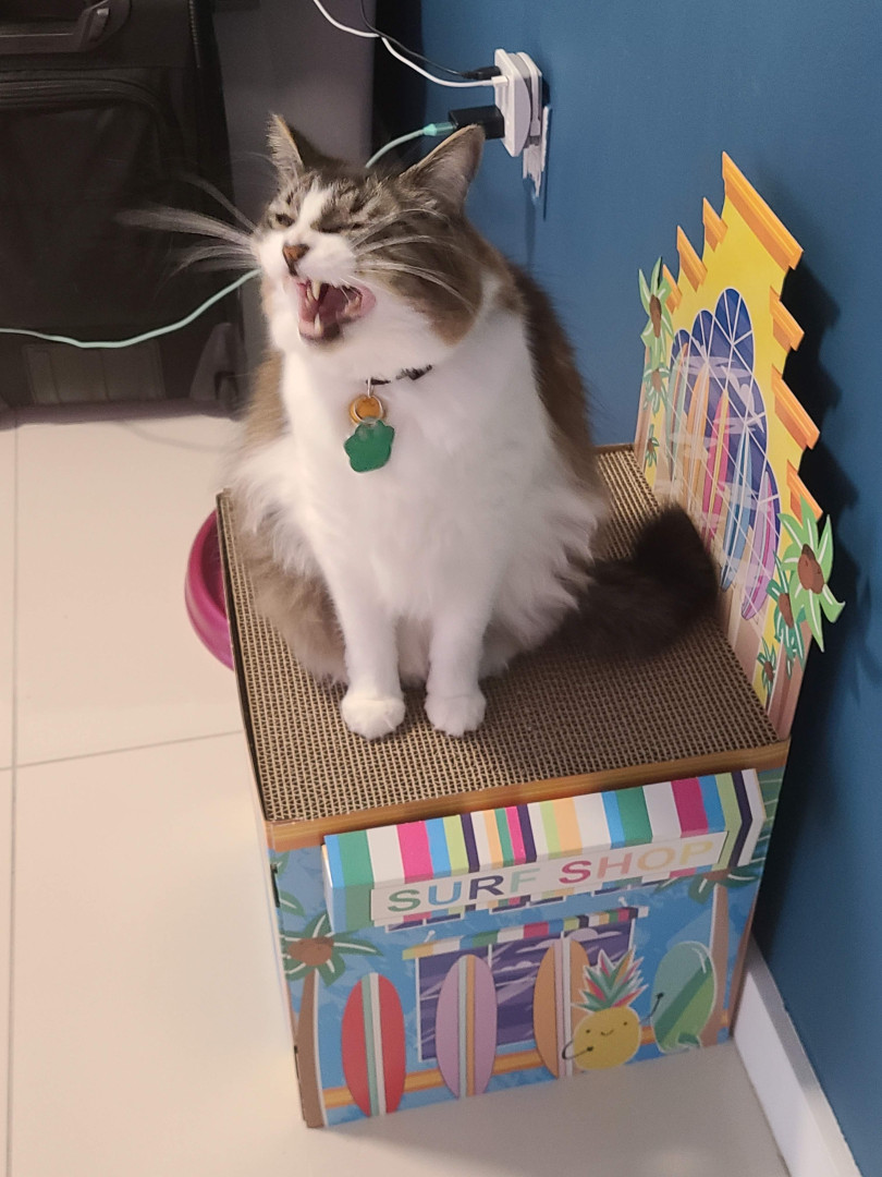Mister Whiskers is a rescue from Puerto Rico. He became my fur baby in 2015. He is a sweet boy who loves cardboard and cuddling.
