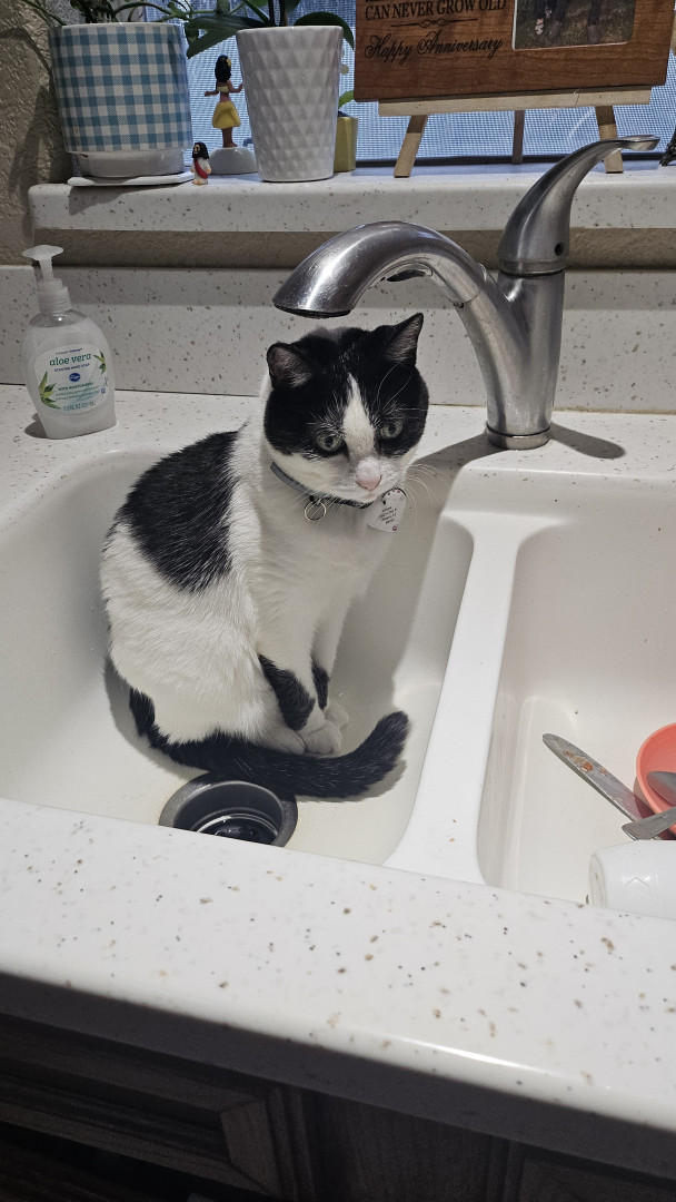 We found Mittens when she was lost and alone at just 6 weeks old! We've had her ever since. You would never know she's a geriatric cat. She plays, wrestles, goes out on the catio and outside on her leash. She's also an expert snuggler! She's definitely brought a lot of love into our lives!